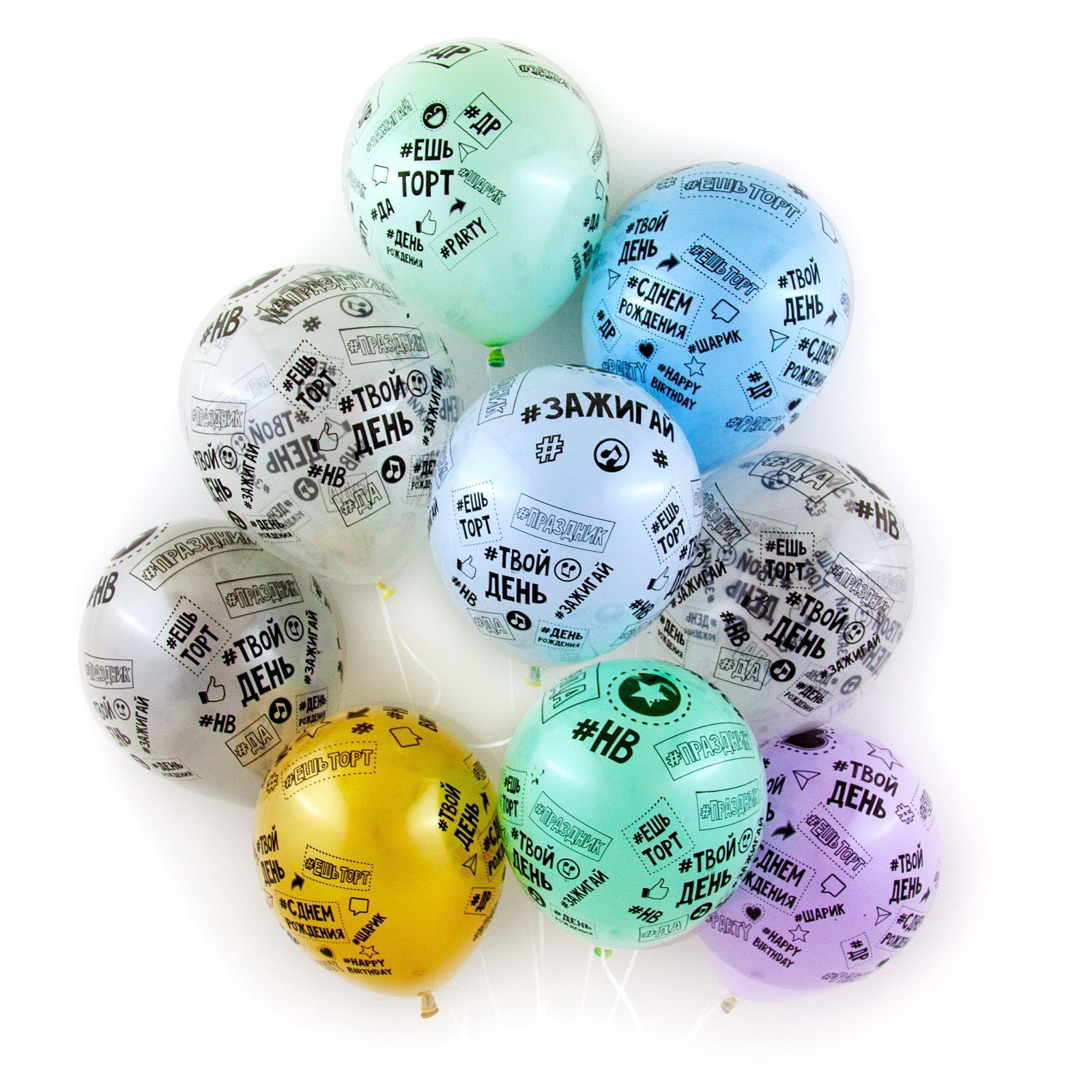 Шар латексный 12""Твой день рождения", кристалл, 5-сторонний, набор 25 шт., Волна Веселья, Малайзия