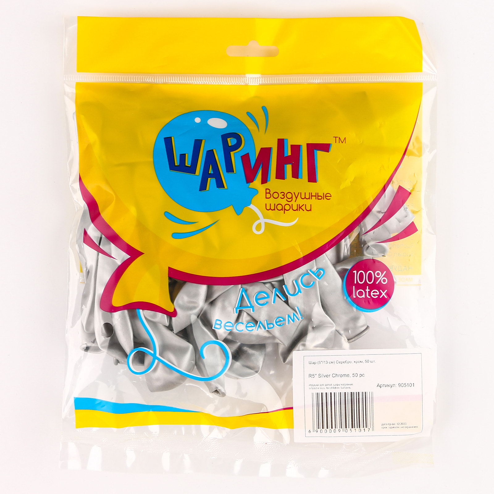 Шар латексный 5", серебро, хром, набор 50 шт., Шаринг, Китай