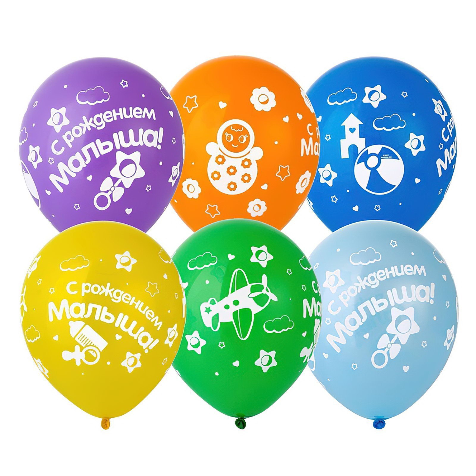 Шар латексный 12""С рождением МАЛЫША", шелкография, набор 25 шт., Весёлая Затея, Китай