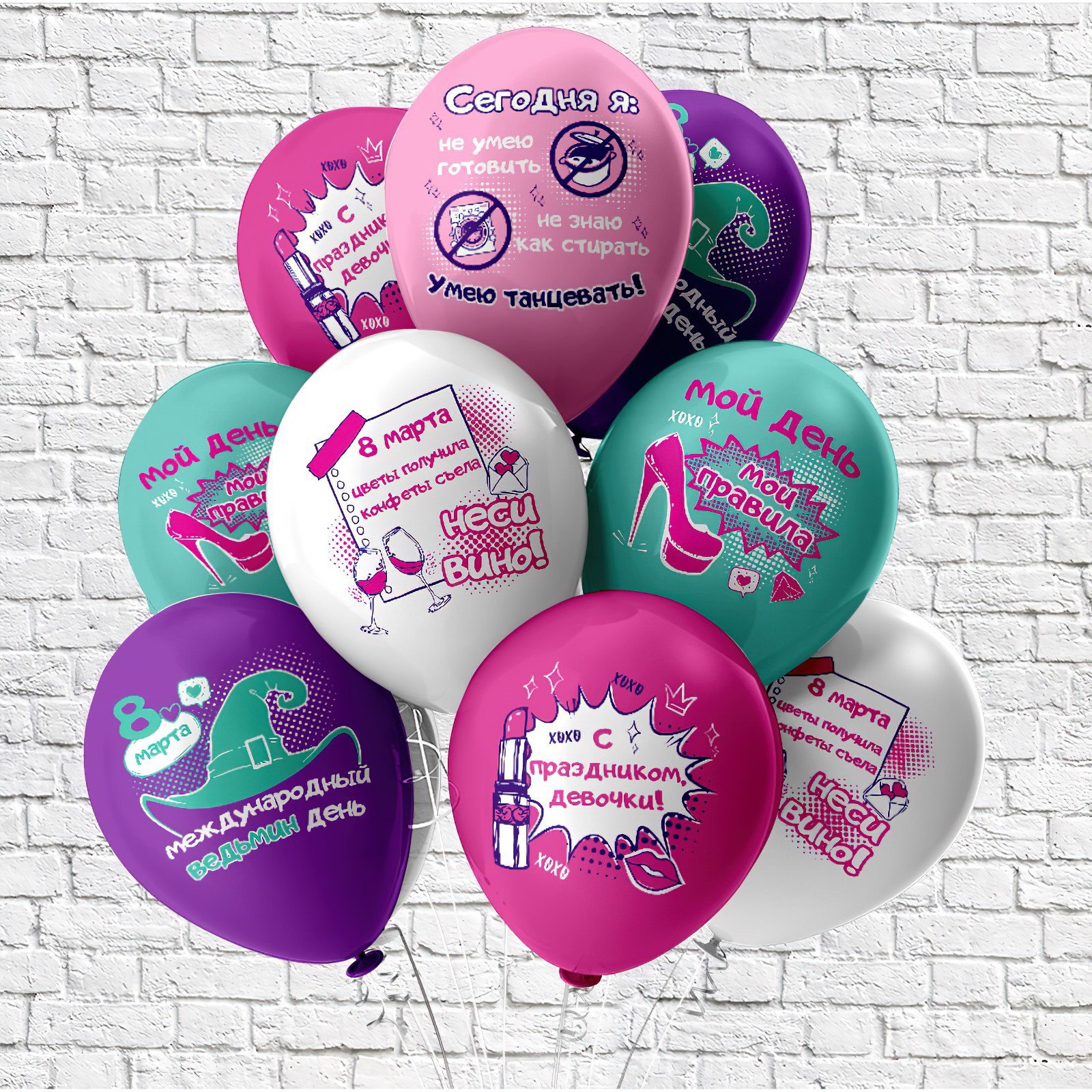 Шар латексный 12""С 8 Марта! Юмор", 1-сторонний, набор 25 шт., МИКС, БиКей, Таиланд