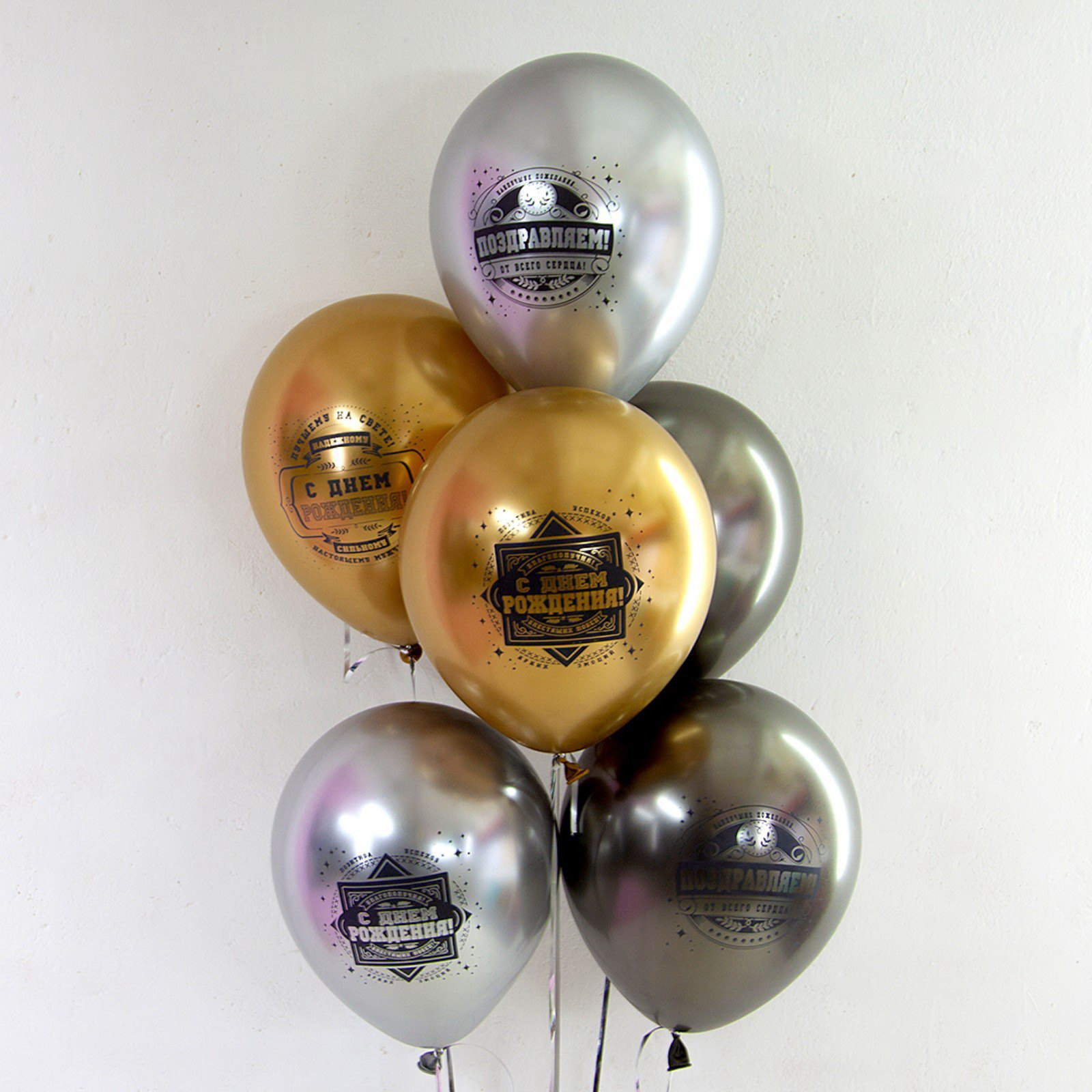 Шар латексный 12""Настоящему Мужчине, С Днём Рождения!", хром, 2 ст, 10 шт. МИКС, Орбиталь, Турция