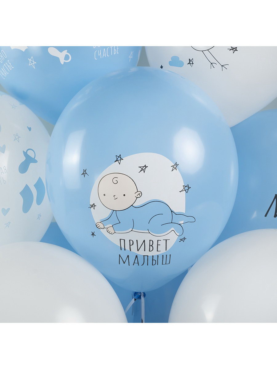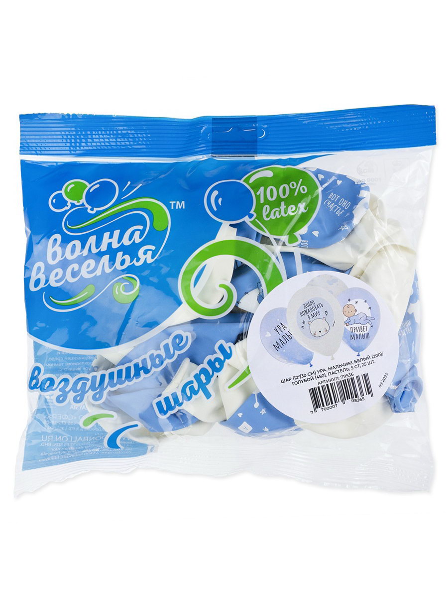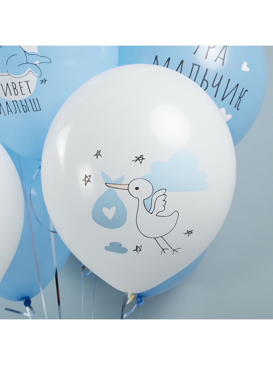 Воздушные шары латексные 12""Ура, мальчик", 25 шт., 5-сторонние, МИКС, Волна Веселья, Малайзия