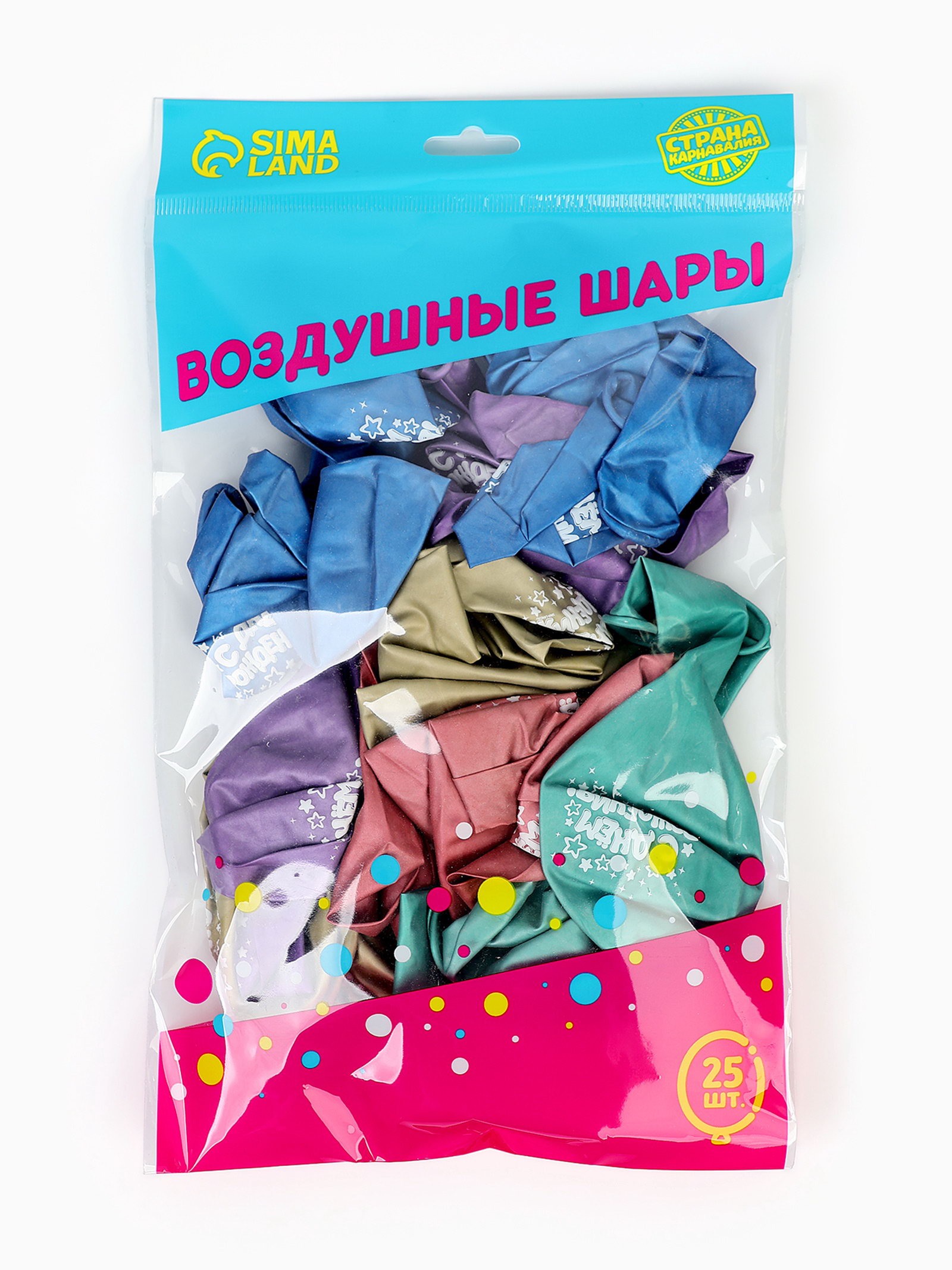 Воздушные шары латексные 12""С днём рождения. Звёзды", 25 шт., хром, Страна Карнавалия, Россия