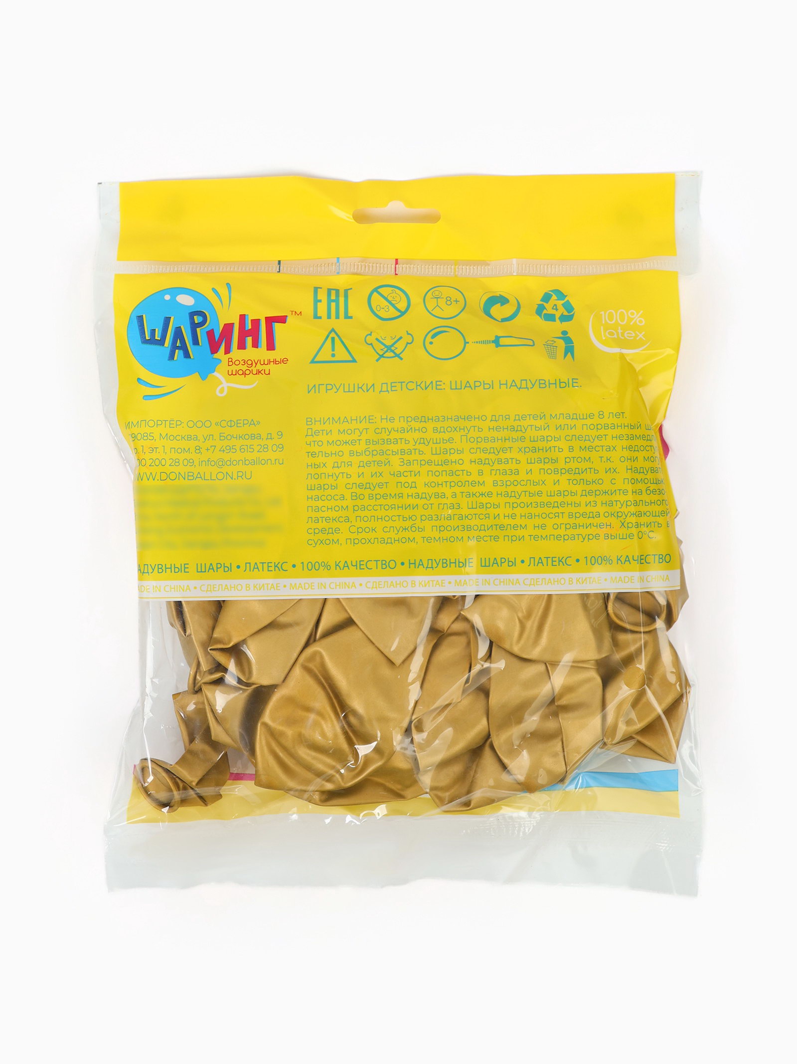 Воздушные шары латексные 12""Хром", 50 шт., золотые, Дон Баллон, Китай