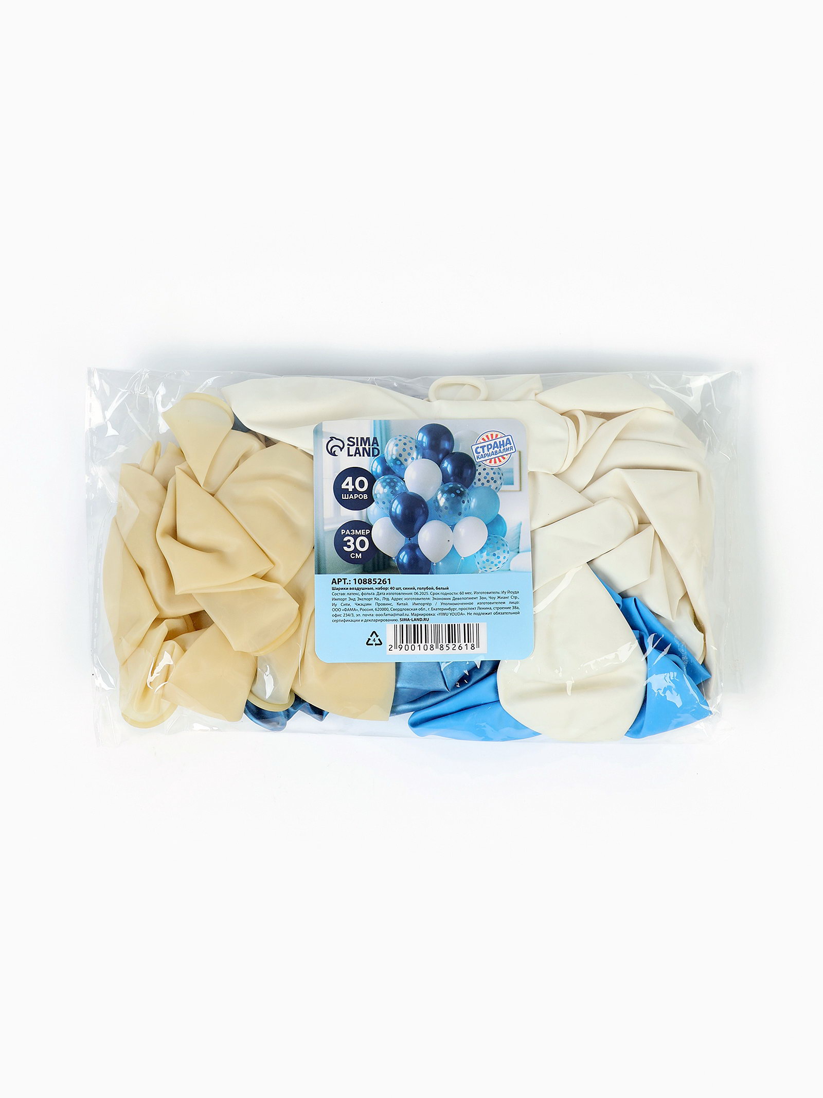 Воздушные шары латексные 12", набор "Синий" 40 шт., с конфетти, 19x22x1.5 см., Страна Карнавалия, Китай
