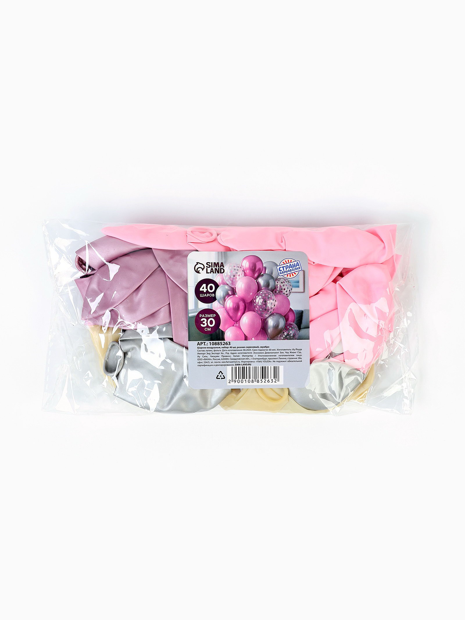 Воздушные шары латексные 12", набор "Розовый", 40 шт., с конфетти, 19x22x1.5 см., Страна Карнавалия, Китай