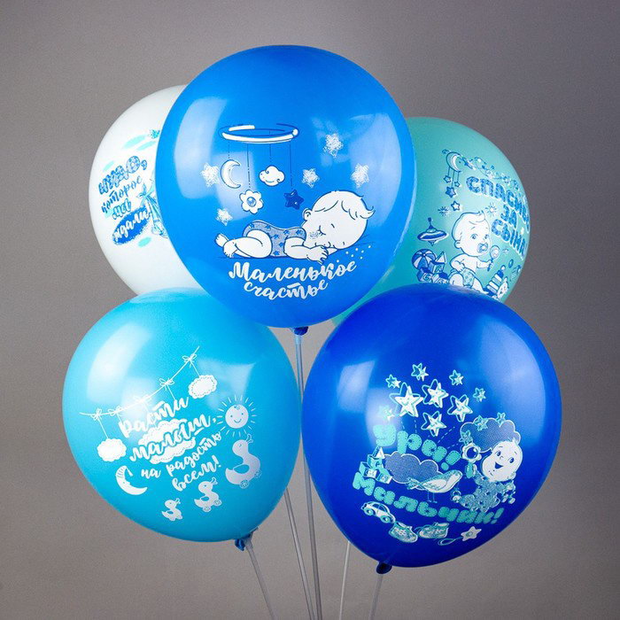 Воздушные шары латексные 12""Новорожденные. Мальчик", 5 шт., 2-сторонние, МИКС, БиКей, Таиланд