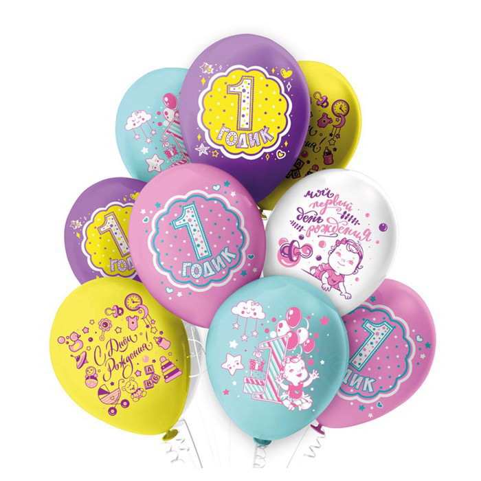 Воздушные шары латексные 12""СДР 1 годик! Девочка!", 5 шт., МИКС, БиКей, Таиланд