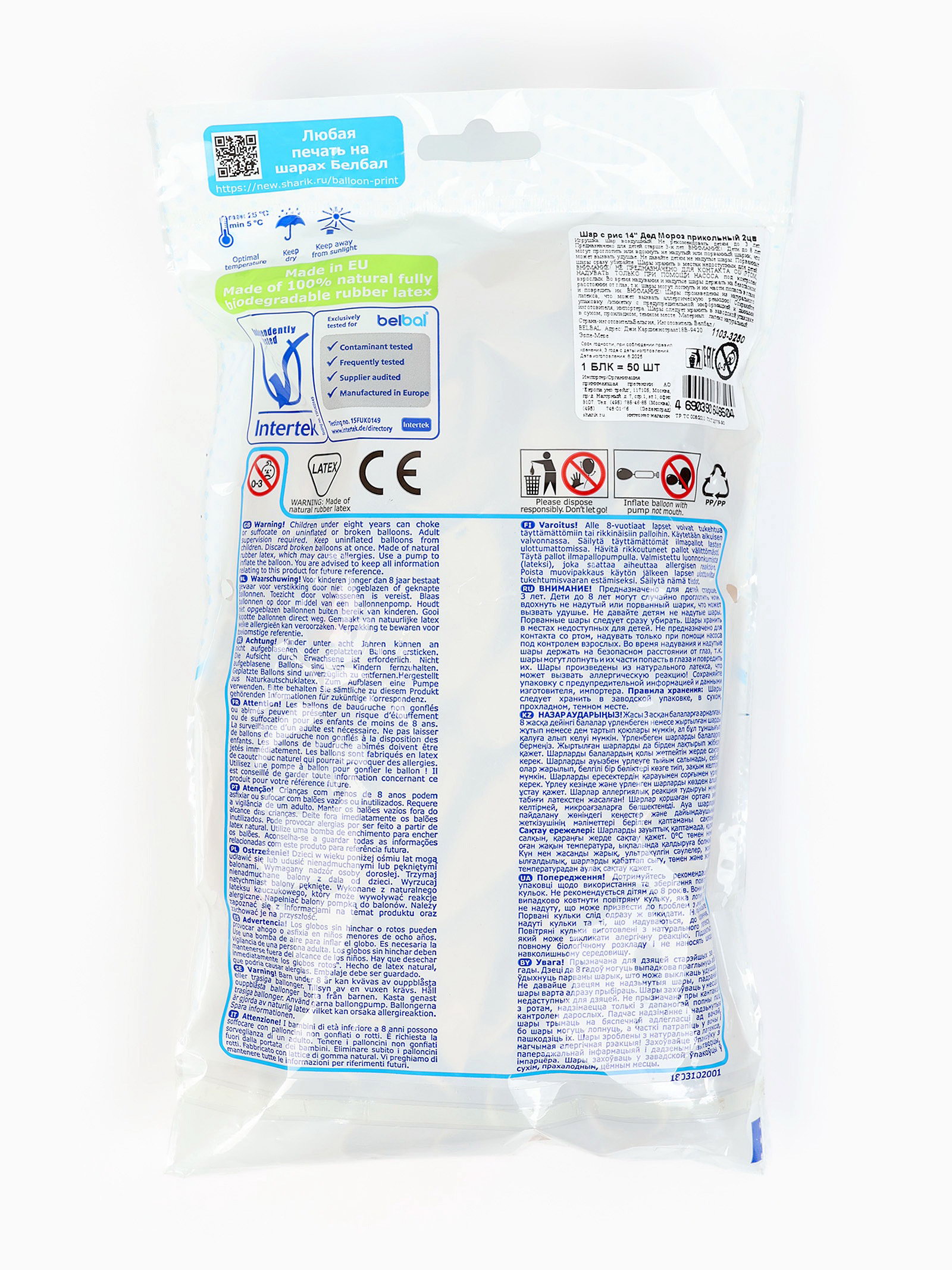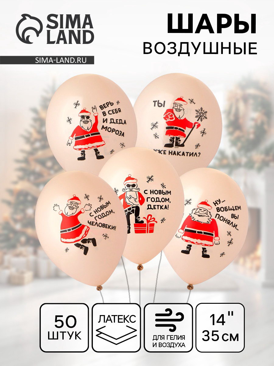 Воздушные шары латексные 14""Дед Мороз, приколы", 50 шт., МИКС, BELBAL, Бельгия