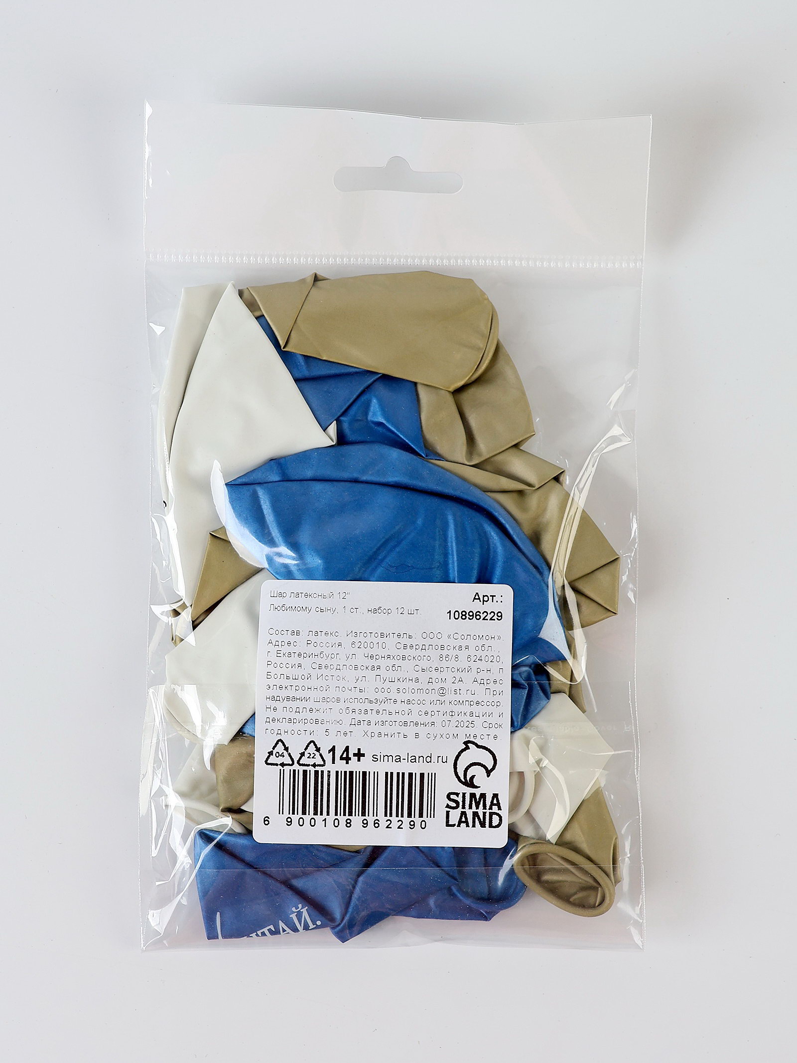 Воздушные шары латексные 12""Любимому сыну", 12 шт., МИКС, Страна Карнавалия, Россия