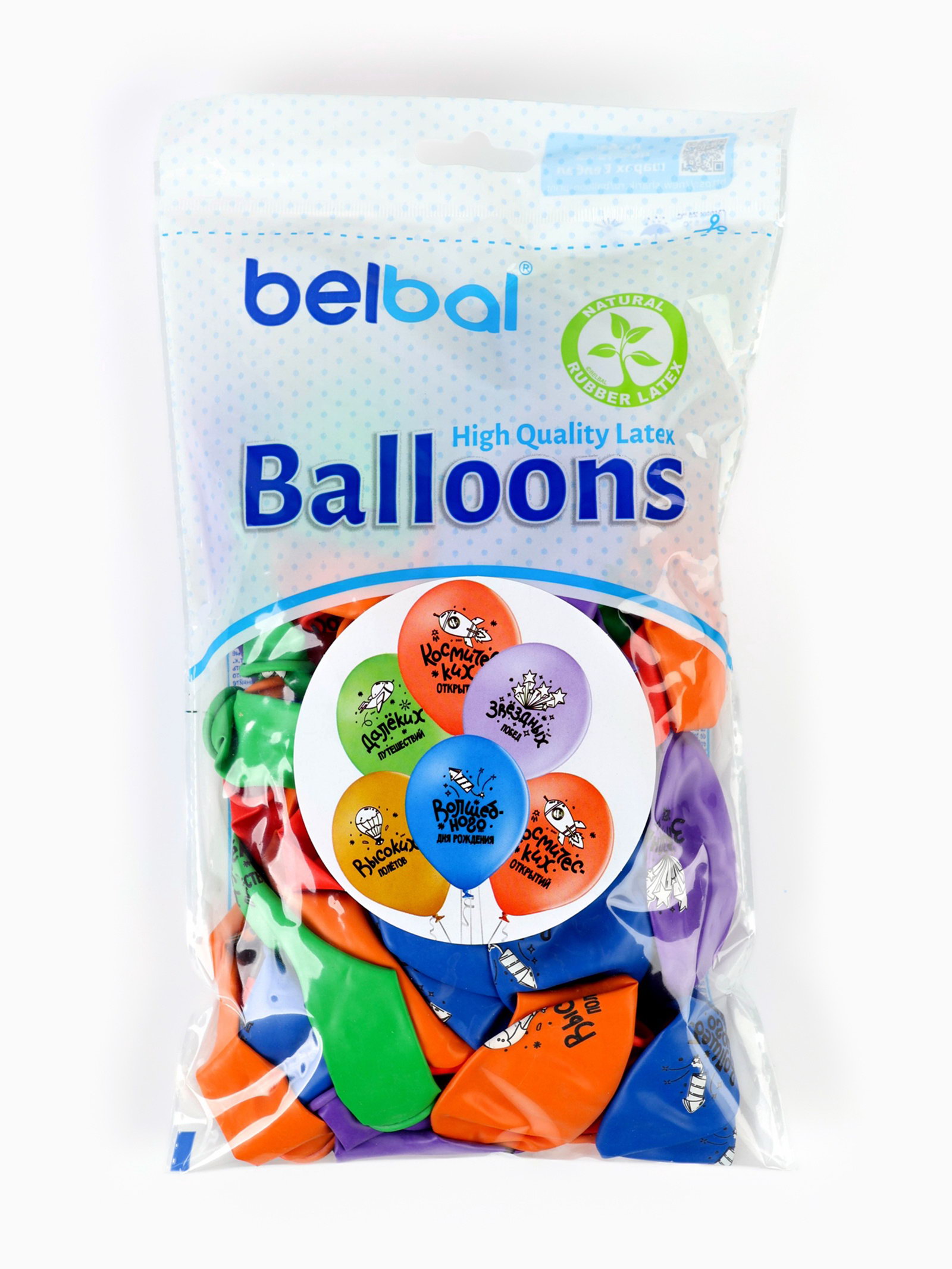 Воздушные шары латексные 14""С ДР пожелания", 50 шт., BELBAL, Бельгия