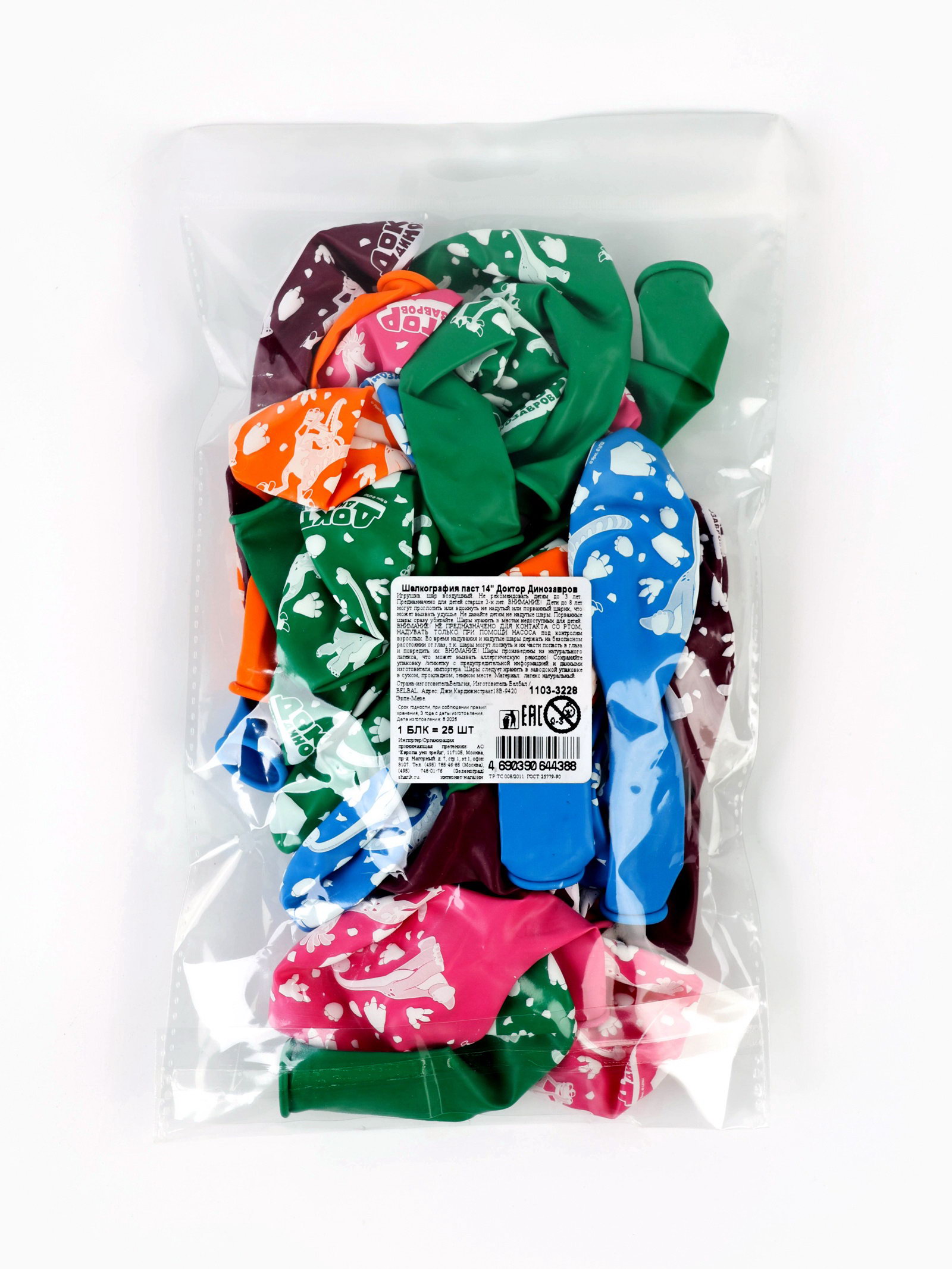 Воздушные шары латексные 14""Доктор Динозавров", 25 шт., BELBAL, Бельгия