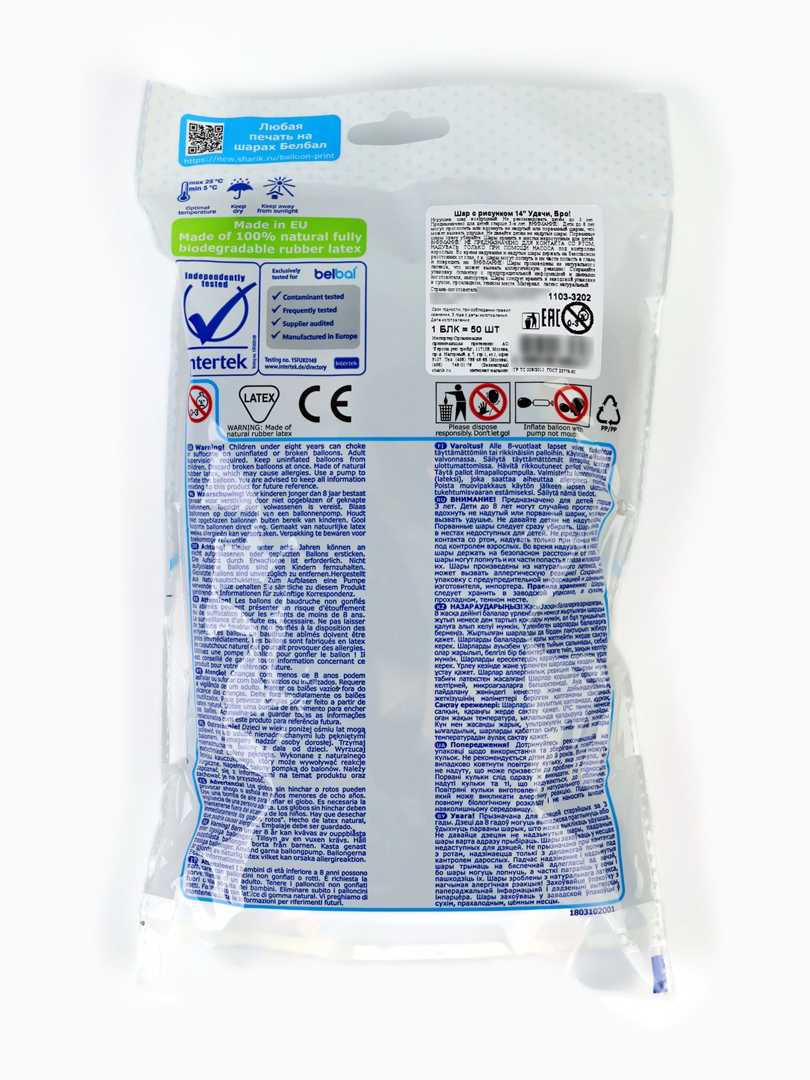 Воздушные шары латексные 14""Удачи бро!", 50 шт., BELBAL, Бельгия