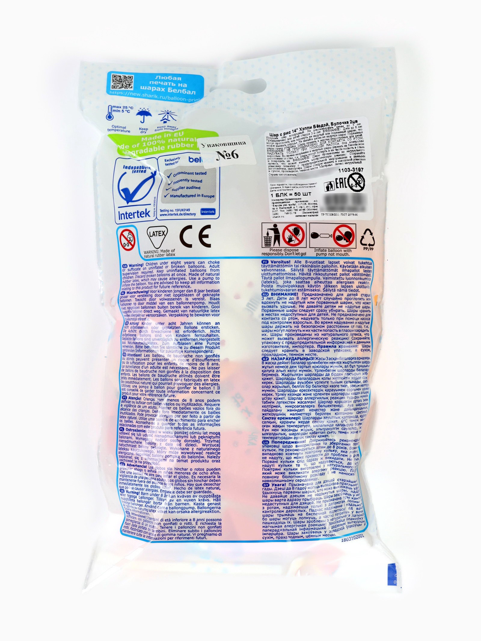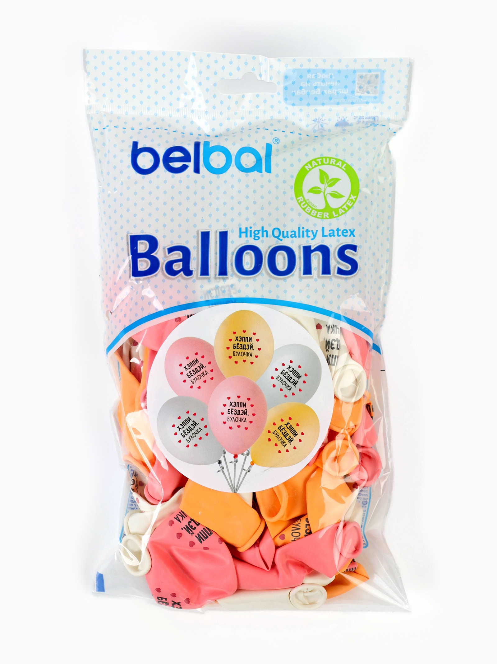 Воздушные шары латексные 14""Хэппи Бёздэй булочка", 50 шт., BELBAL, Бельгия