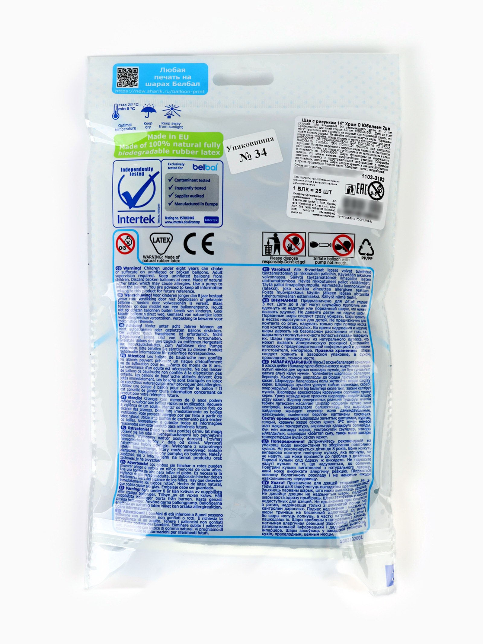 Воздушные шары латексные 14""С юбилеем", 25 шт., BELBAL, Бельгия