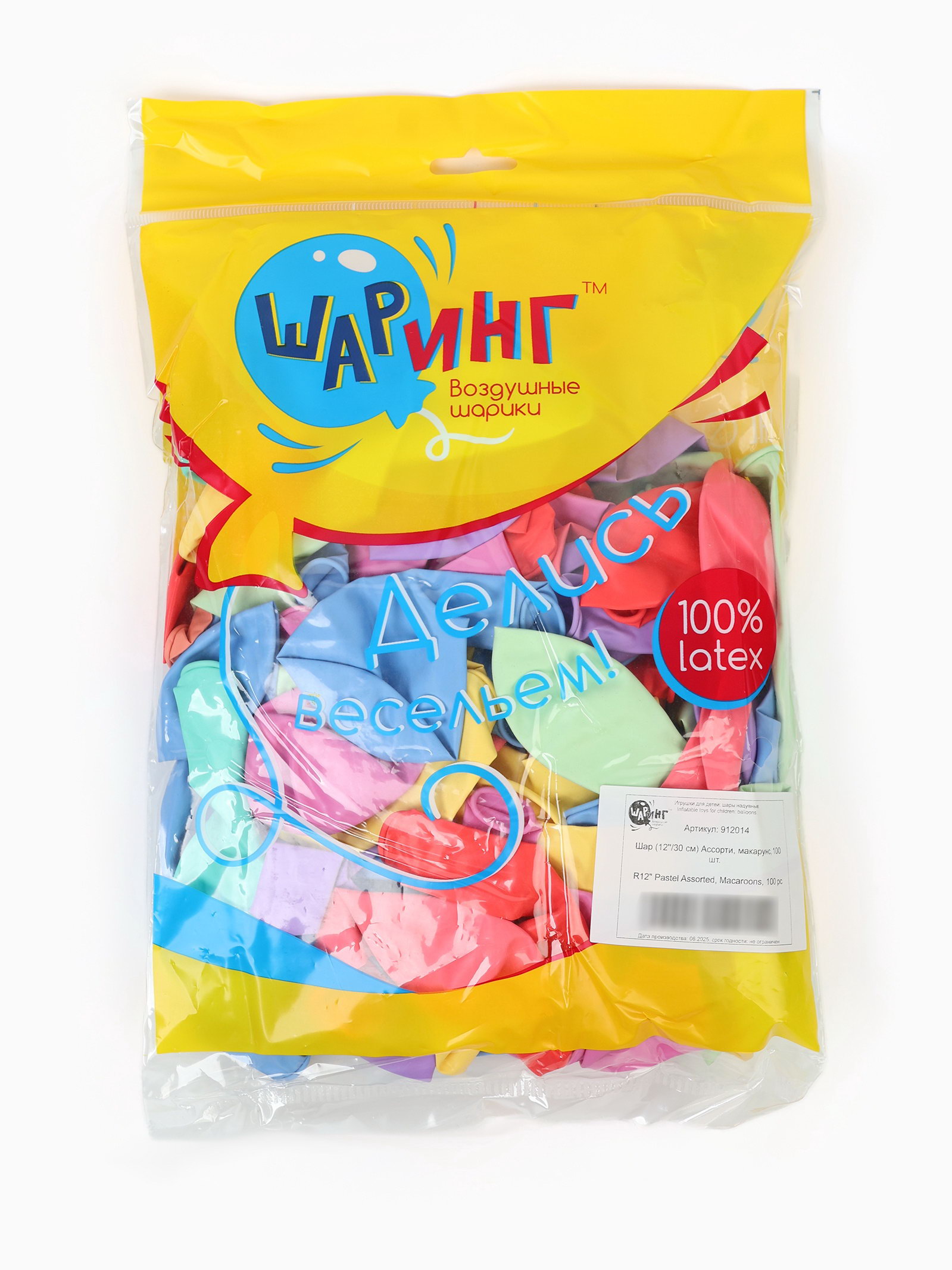 Воздушные шары латексные 12""Ассорти", 100 шт., Шаринг, Китай