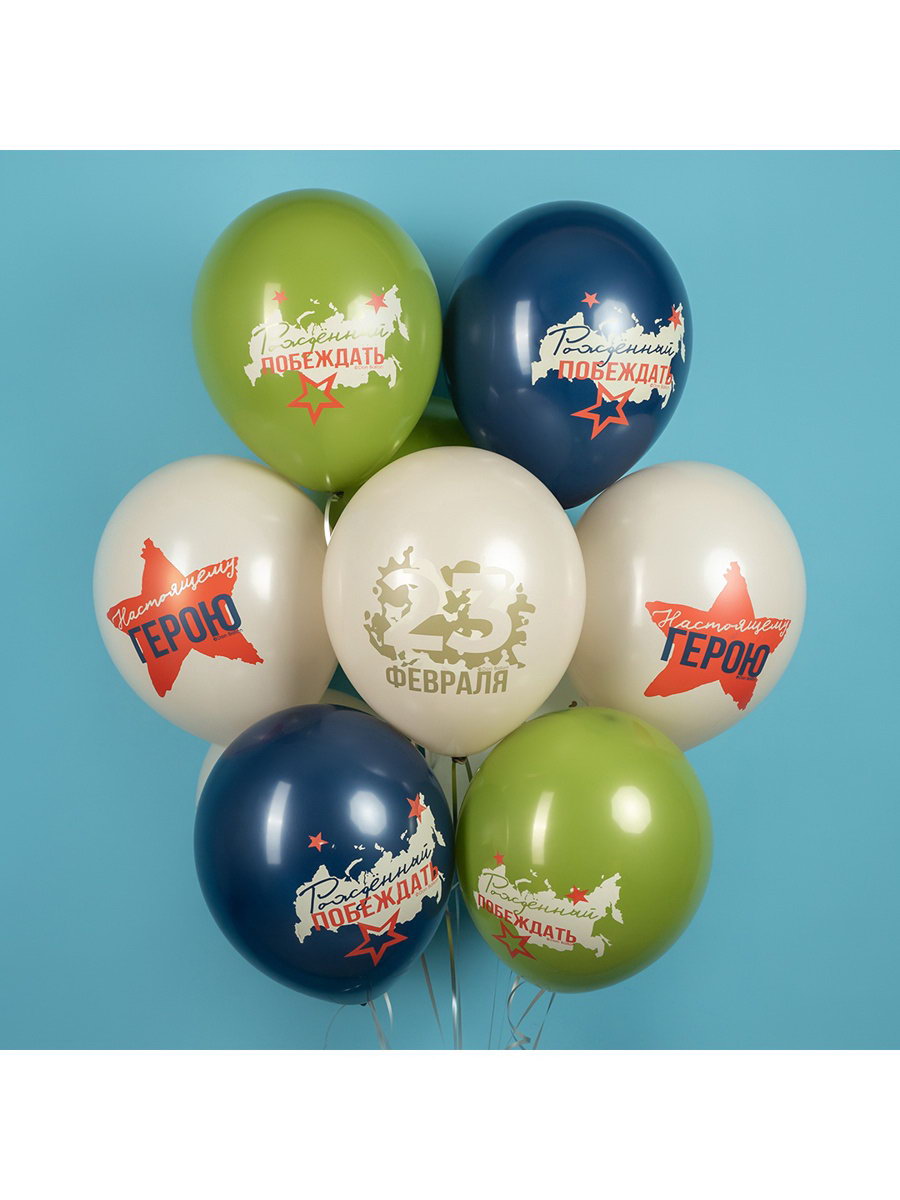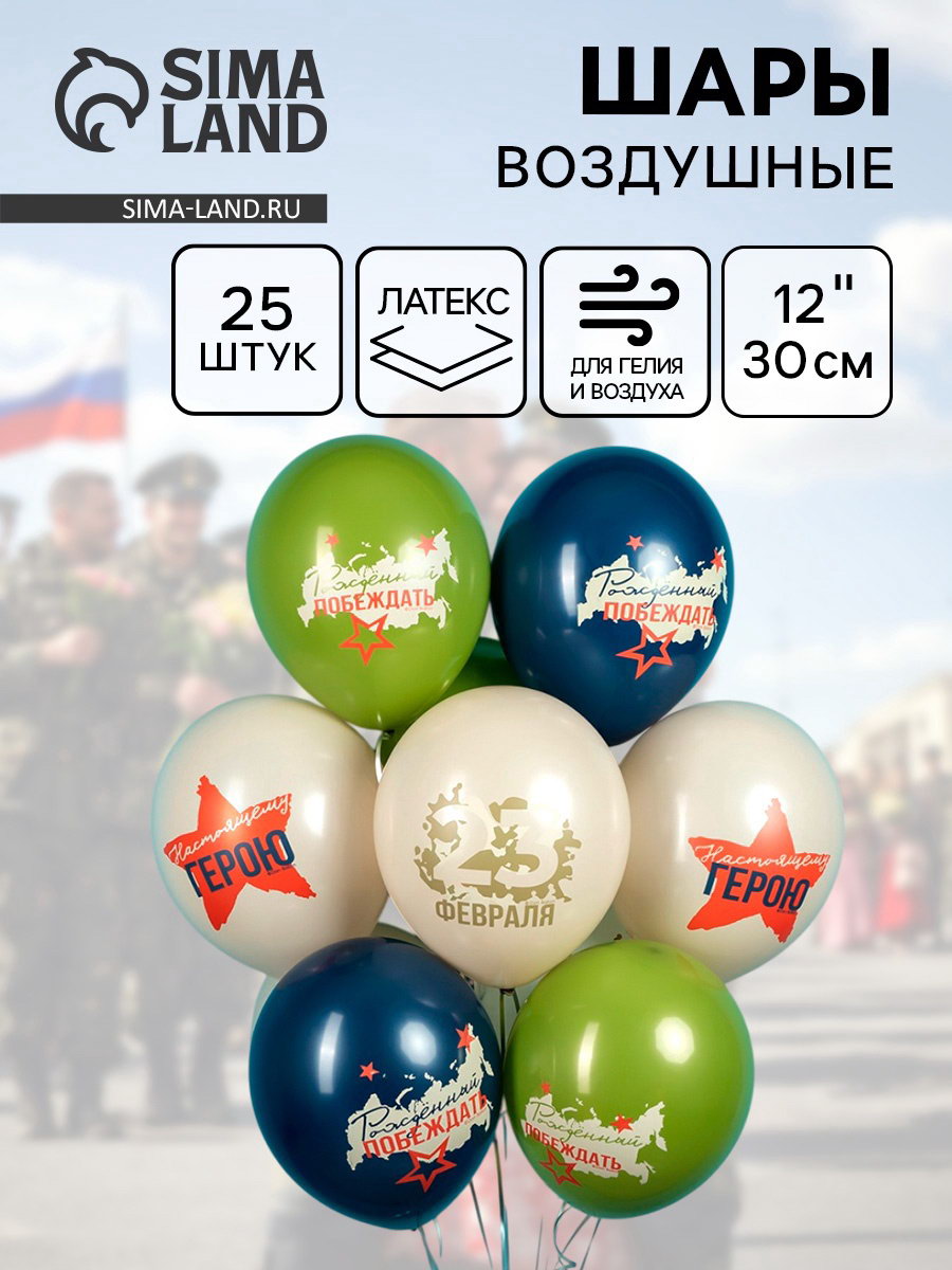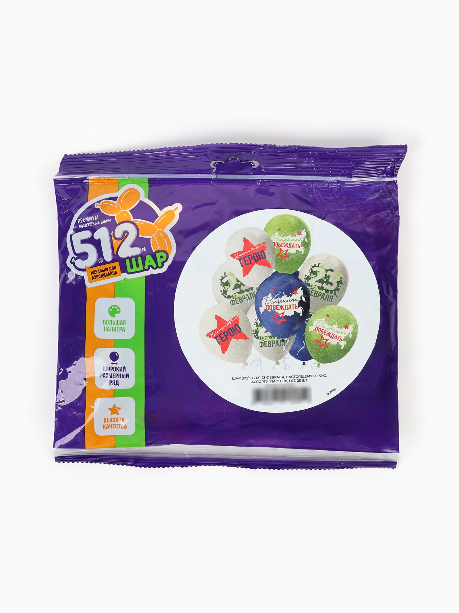 Воздушные шары латексные 12""23 Февраля, Настоящему Герою", 25 шт., 2-сторонние, МИКС, Шар 512, Китай
