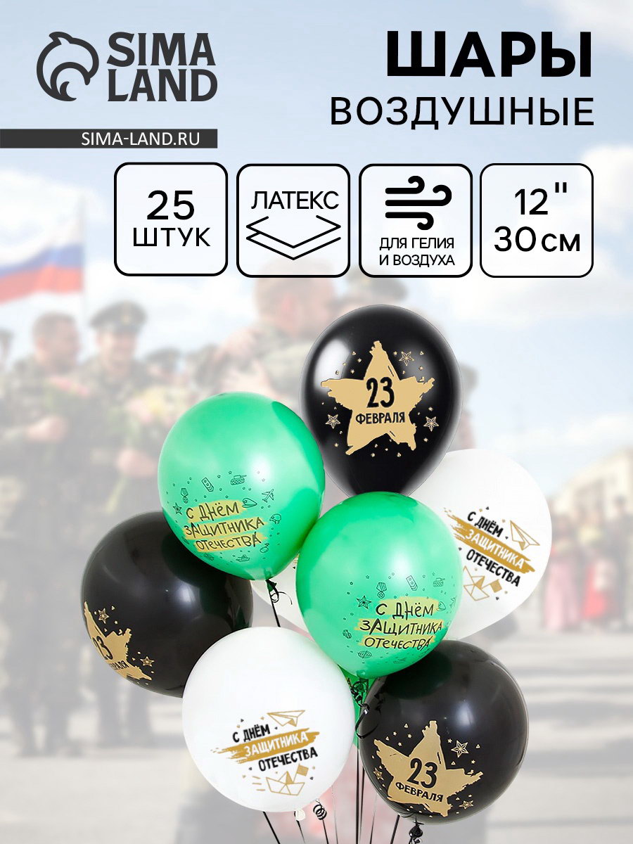Воздушные шары латексные 12""23 Февраля, С Днем Защитника Отечества!", 25 шт., 2-сторонние, Волна Веселья, Малайзия