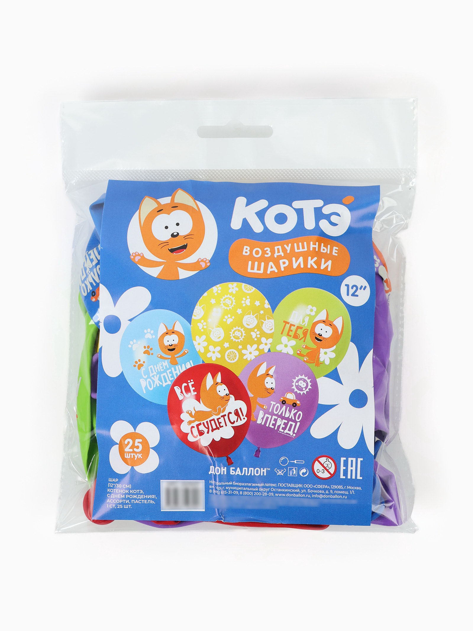 Воздушные шары латексные 12""Котенок Котэ, С Днем Рождения", 25 шт., МИКС, Шар 512, Китай