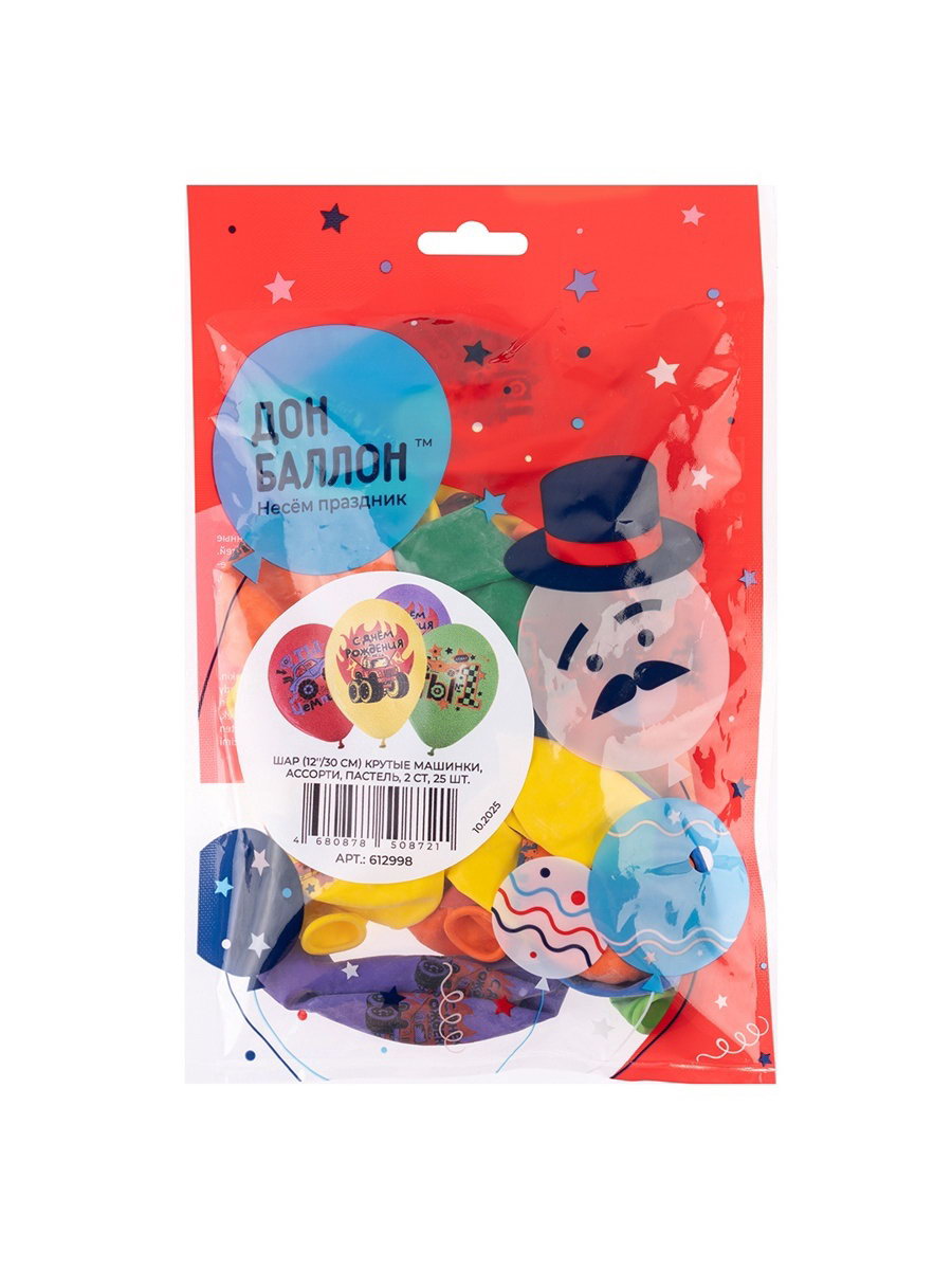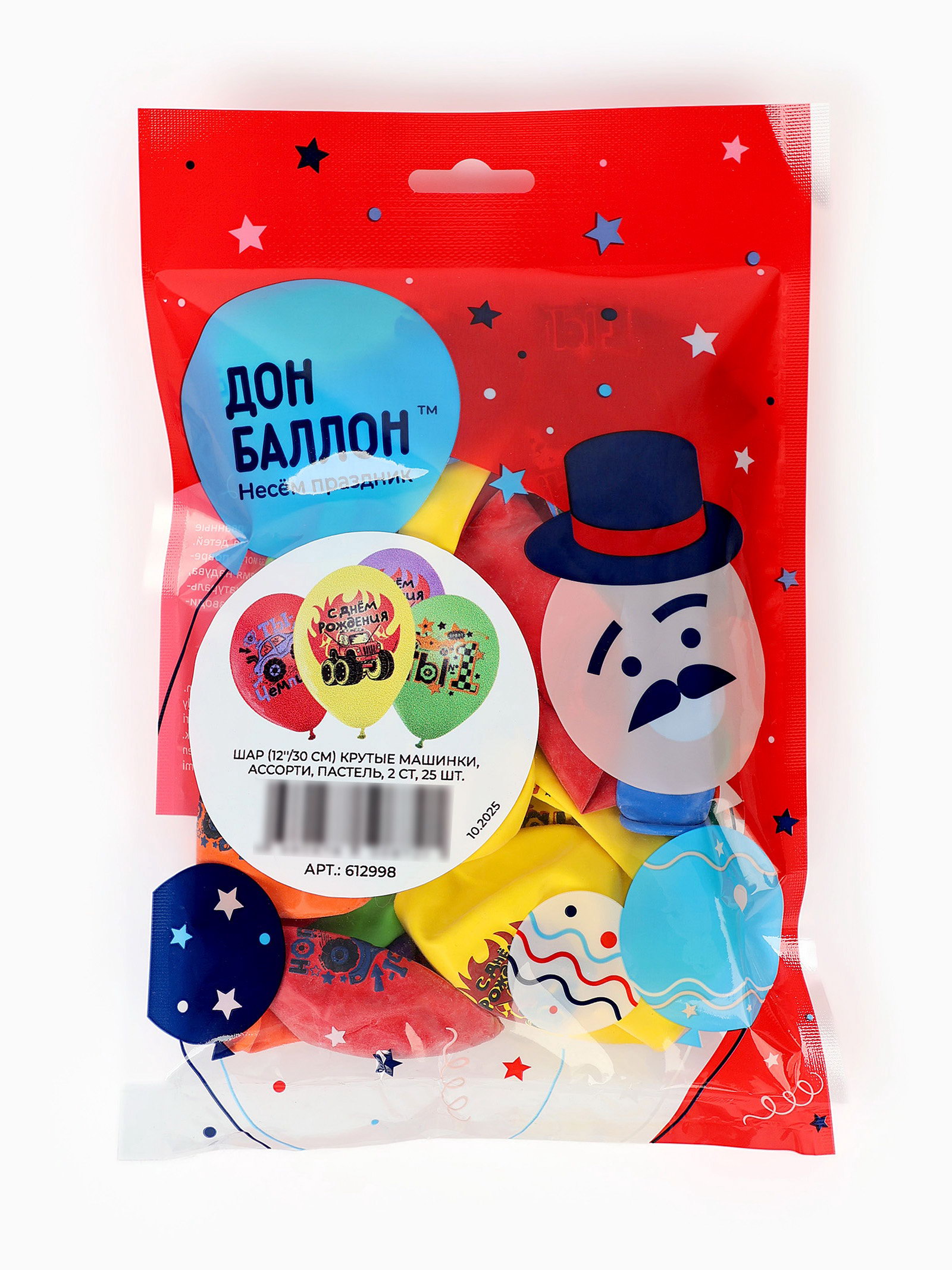 Воздушные шары латексные 12""Крутые машинки", набор 25 шт., МИКС, Дон Баллон, Китай