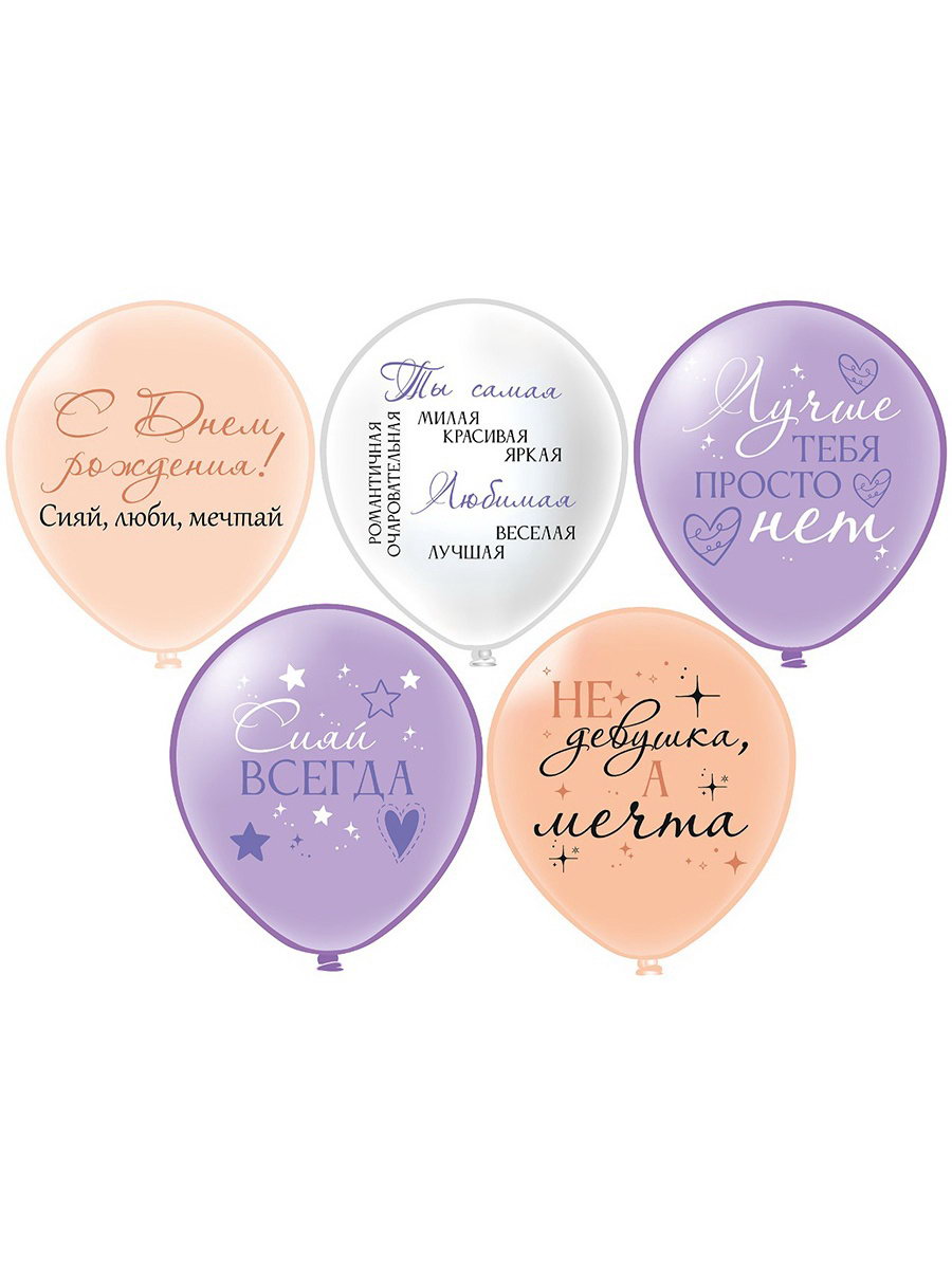 Воздушные шары латексные 12""С днём рождения! Девушка - мечта", 25 шт., БиКей, Таиланд