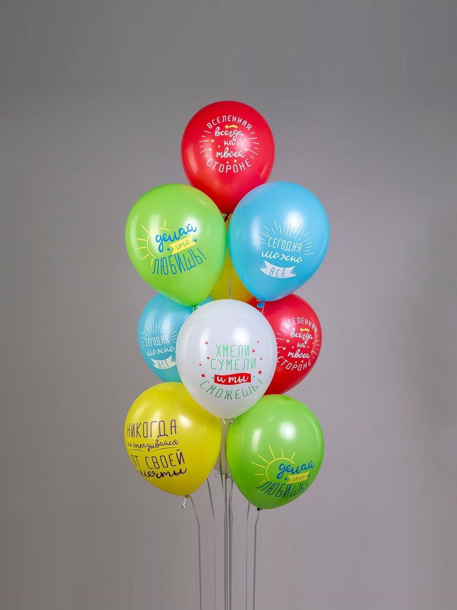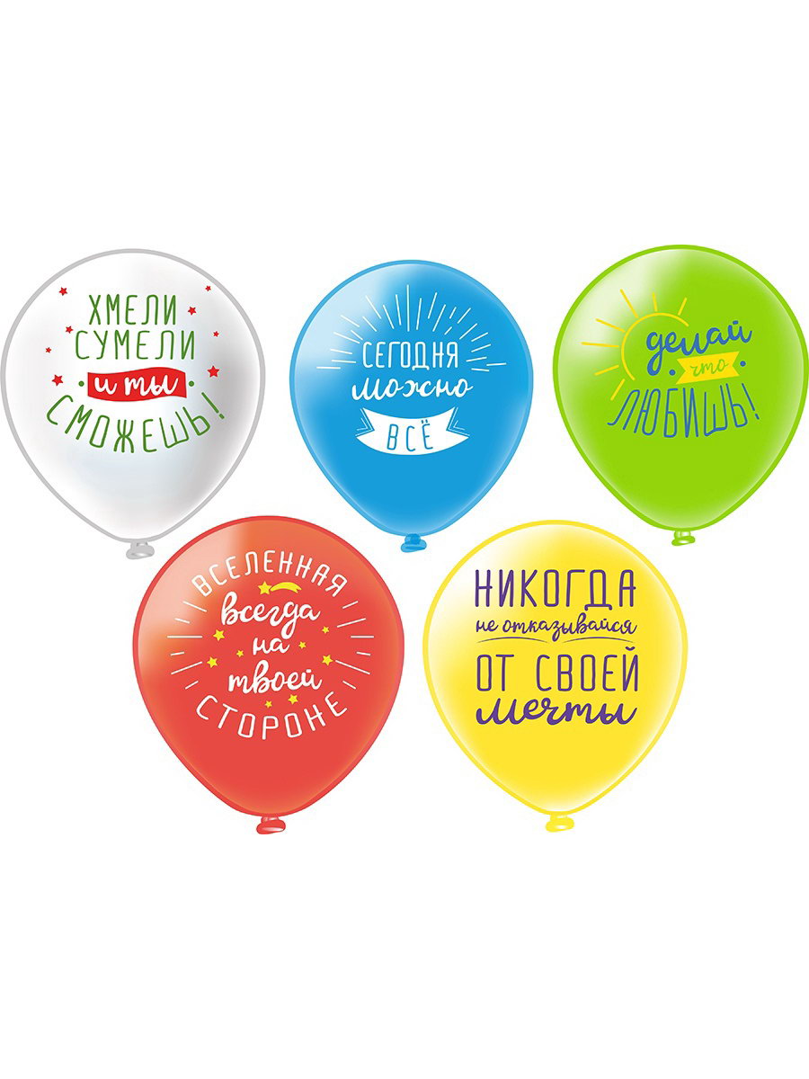 Воздушные шары латексные 12""Позитивные фразы", 25 шт., БиКей, Таиланд