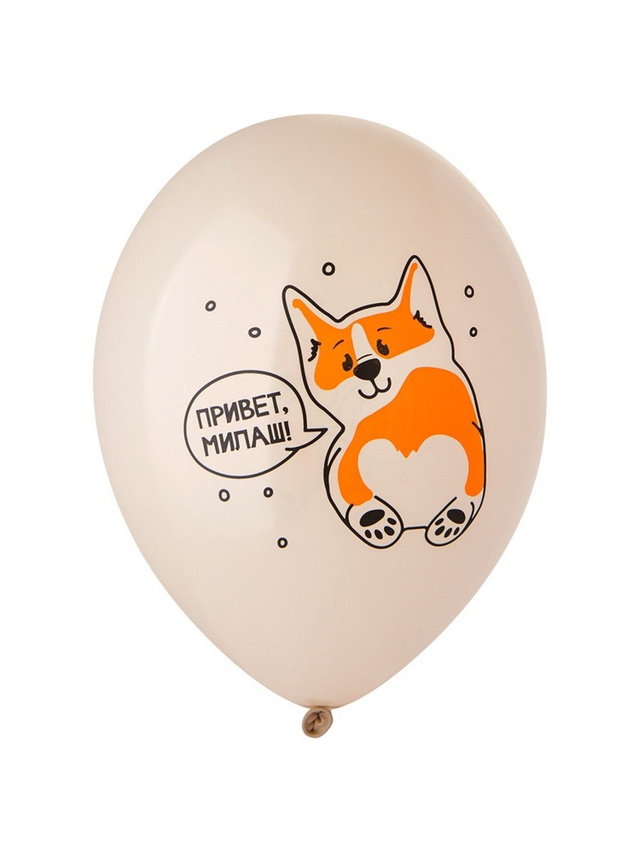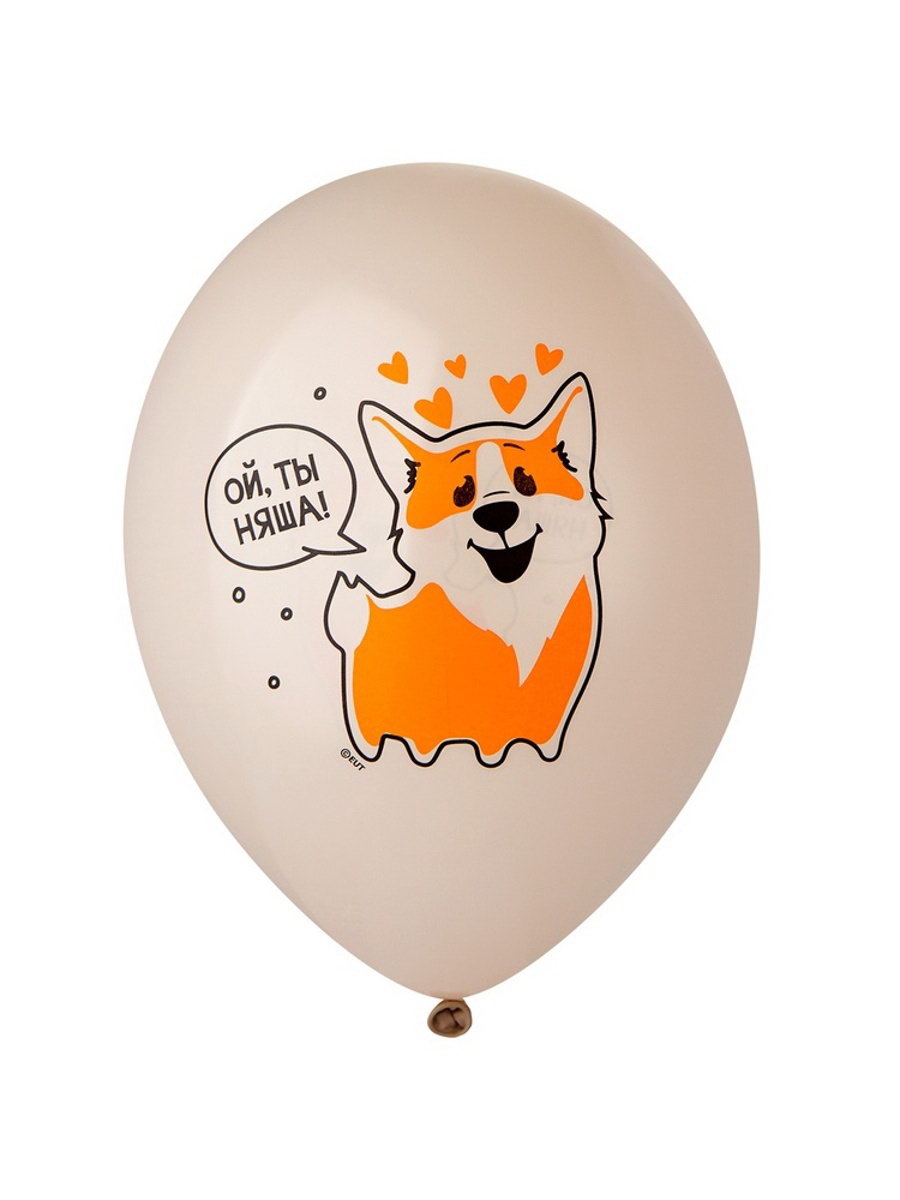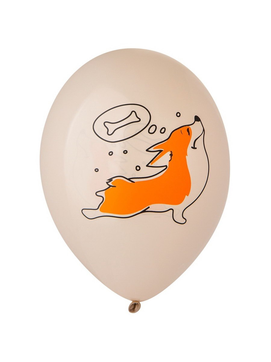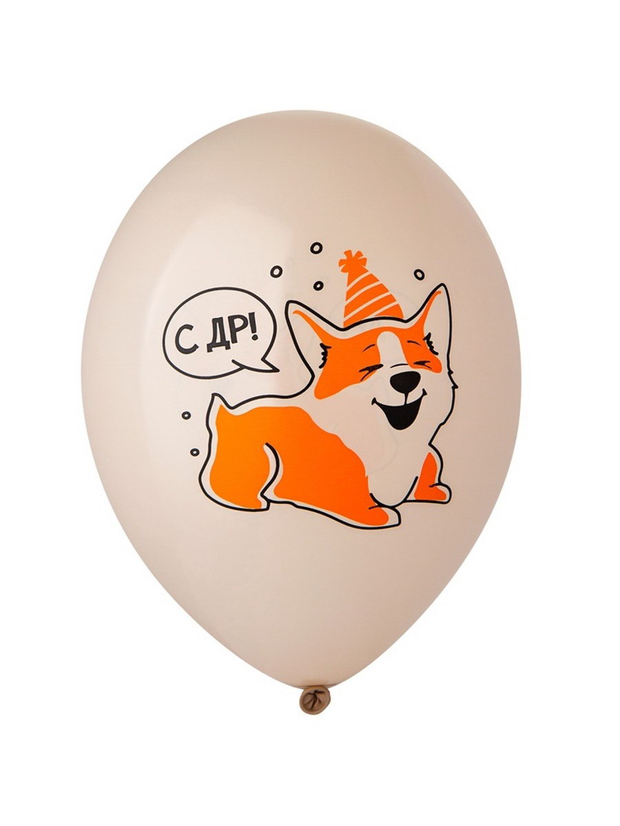 Воздушный шар латексный 14""С днём рождения. Корги", 50 шт., BELBAL, Бельгия
