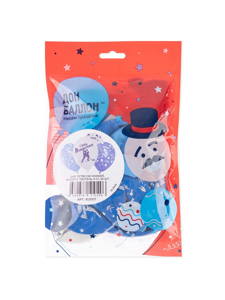 Воздушный шар латексный 12""Хоккей", 25 шт., Дон Баллон, Китай