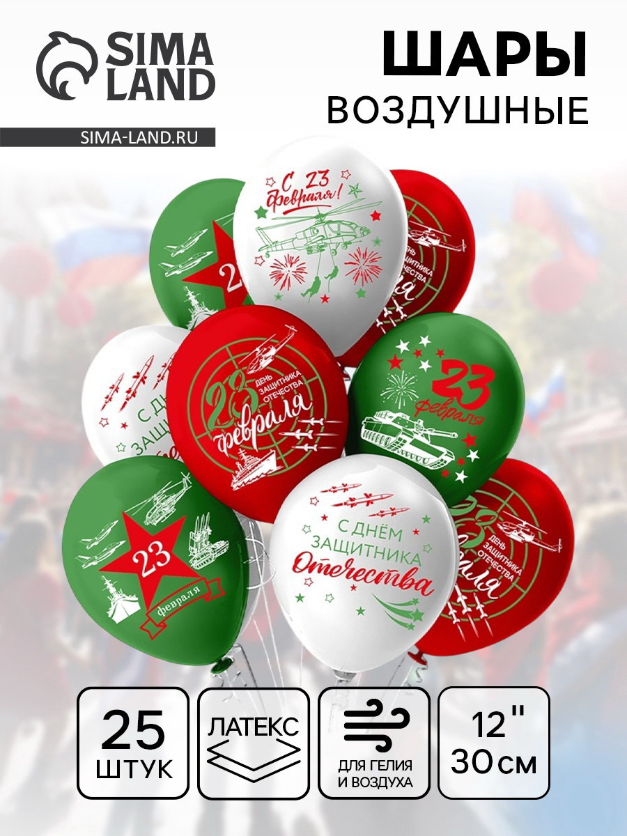 Воздушный шар латексный 12""Праздник 23 Февраля", 25 шт., БиКей, Таиланд