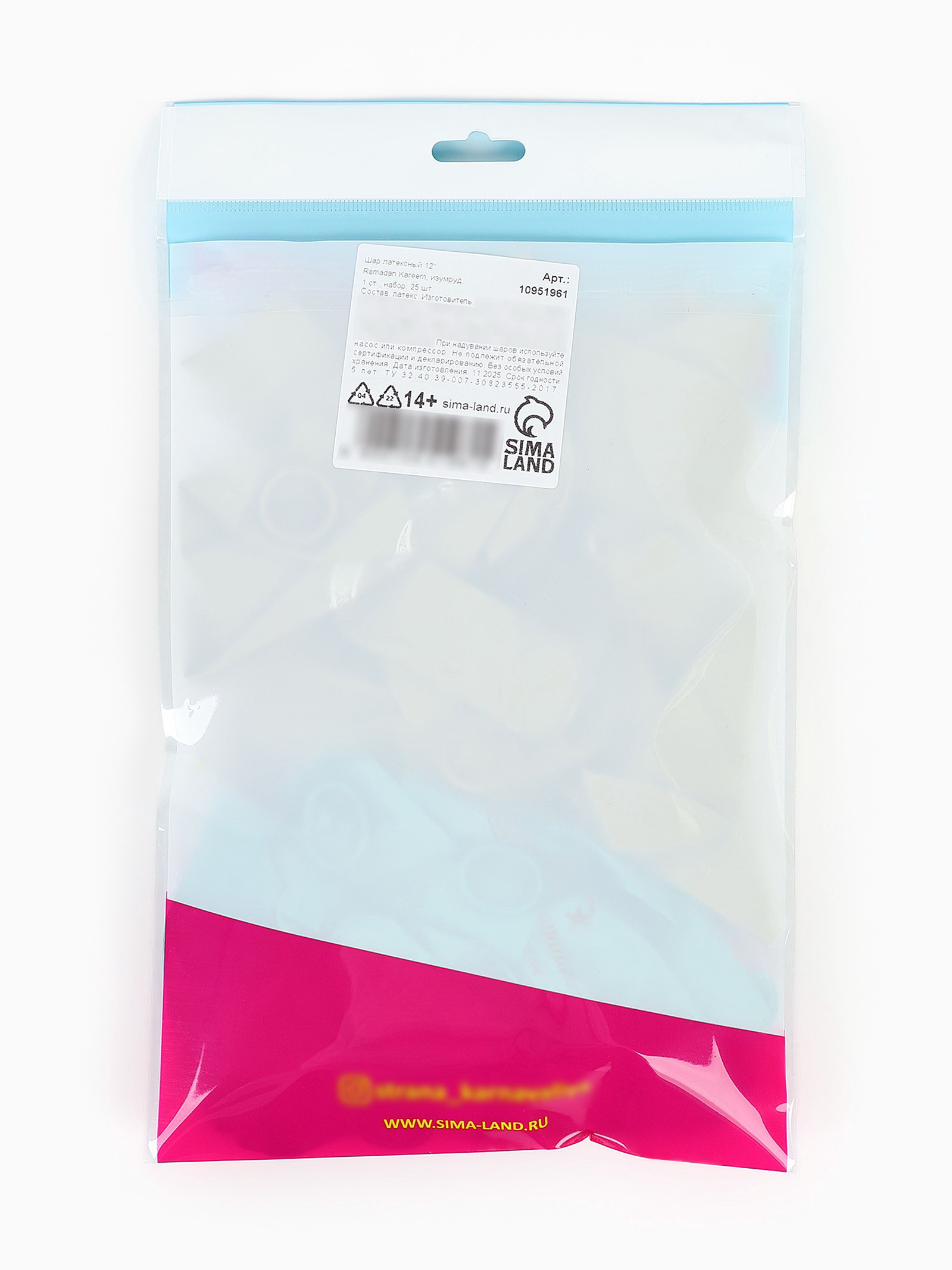 Шар воздушный 12""Ramadan Kareem", изумруд 1 ст., набор 25 шт., Страна Карнавалия, Россия