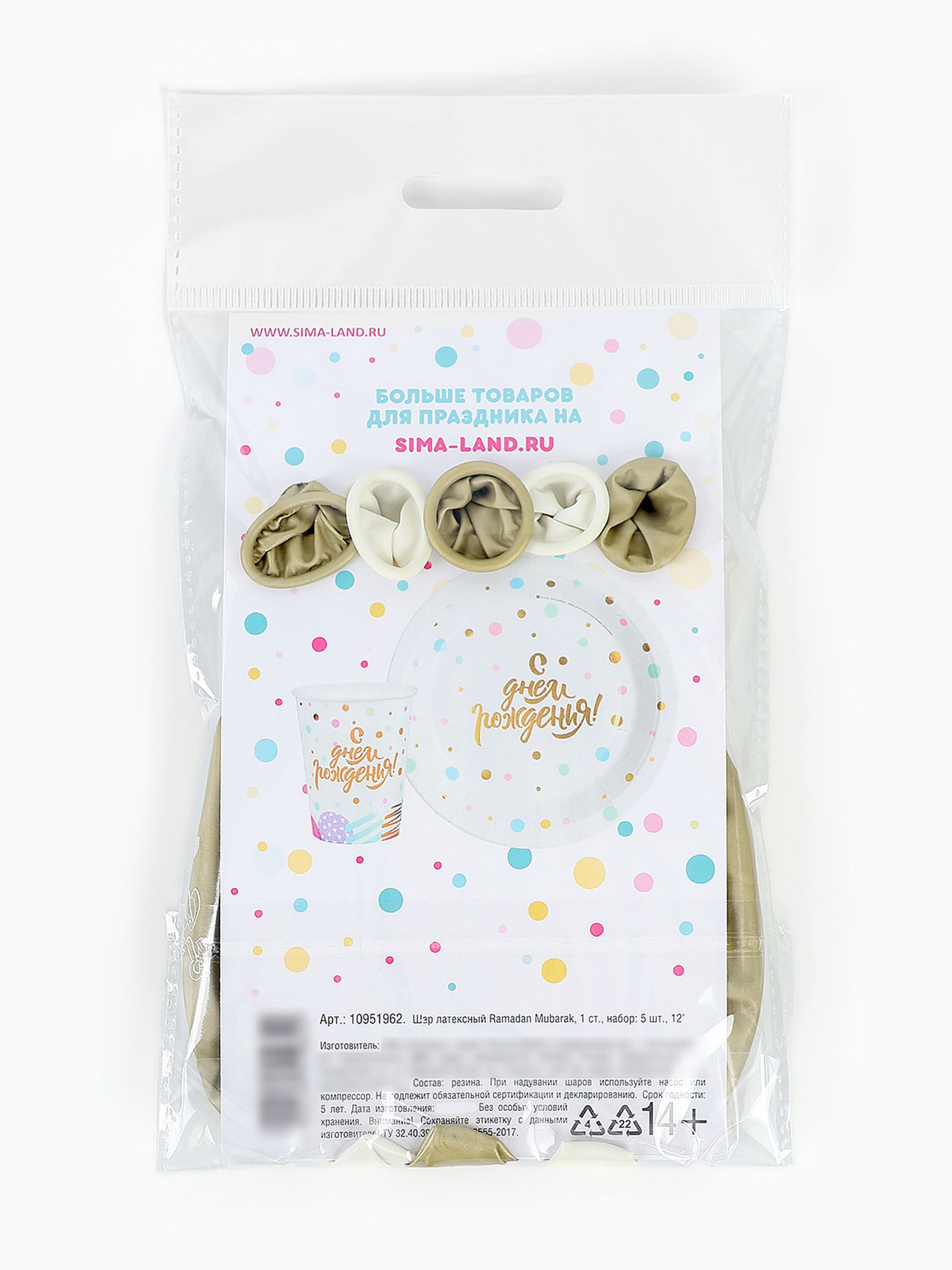 Шар воздушный 12""Ramadan Mubarak", 1 ст., набор 5 шт., Страна Карнавалия, Россия