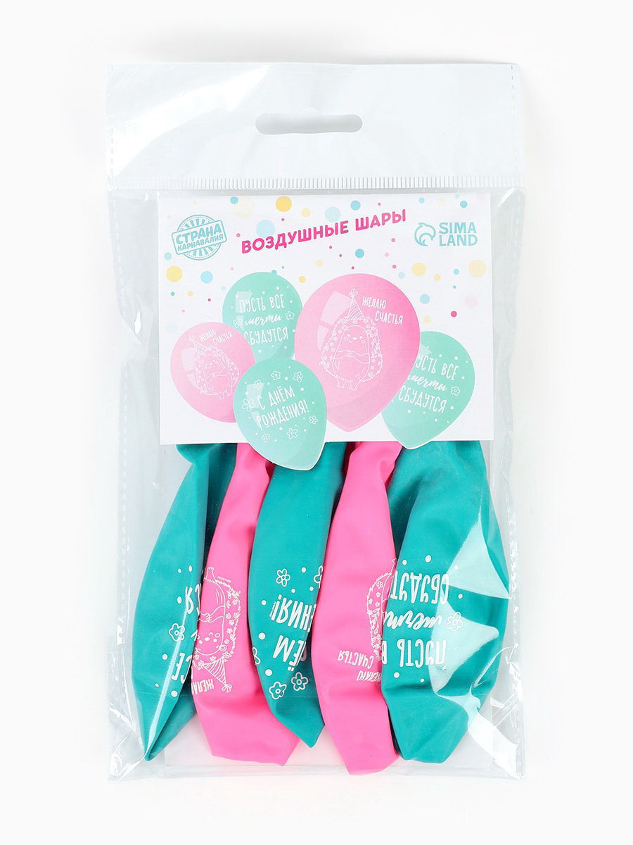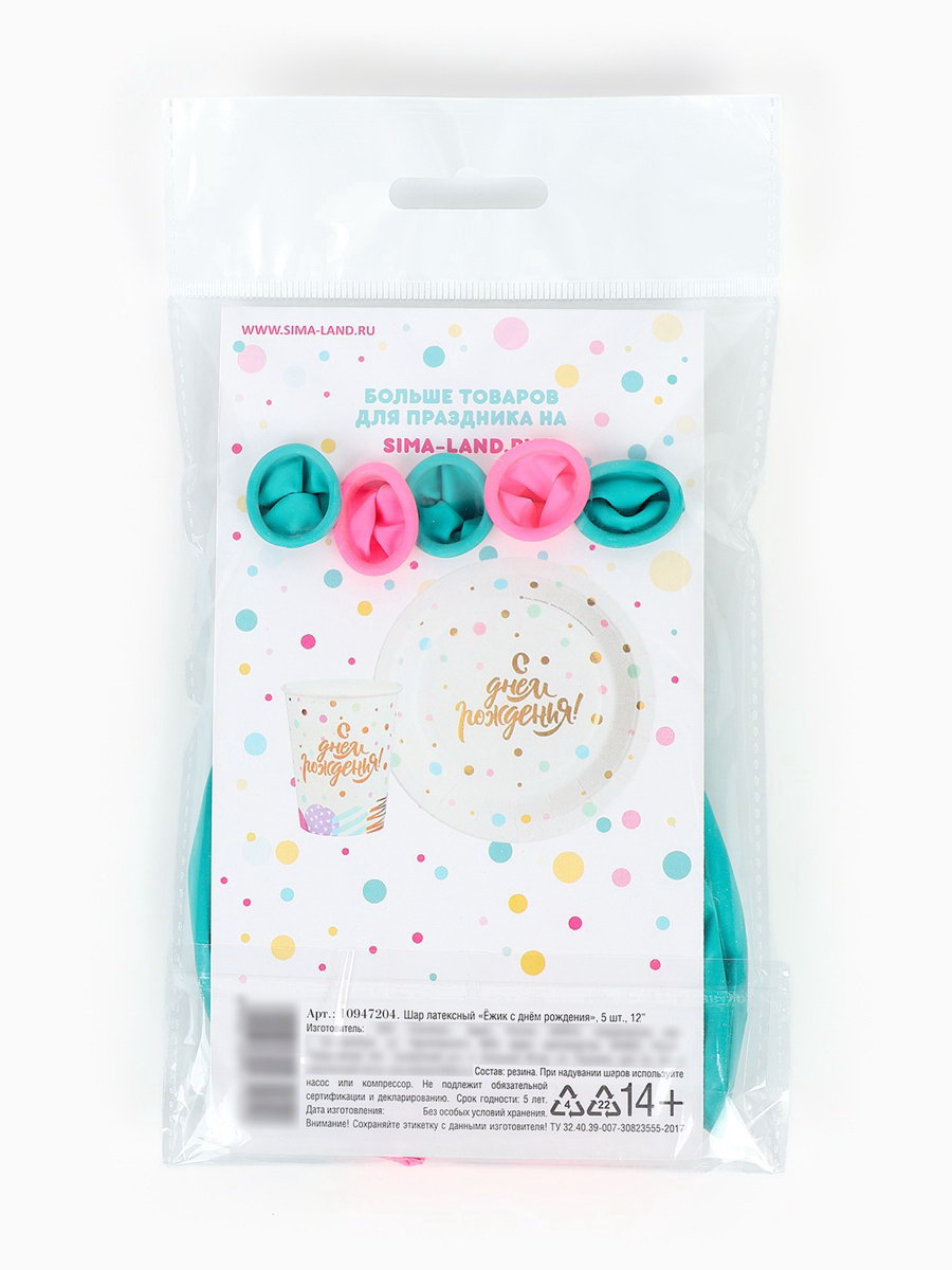 Воздушный шар латексный 12""Ёжик с днём рождения", набор 5 шт., Страна Карнавалия, Россия