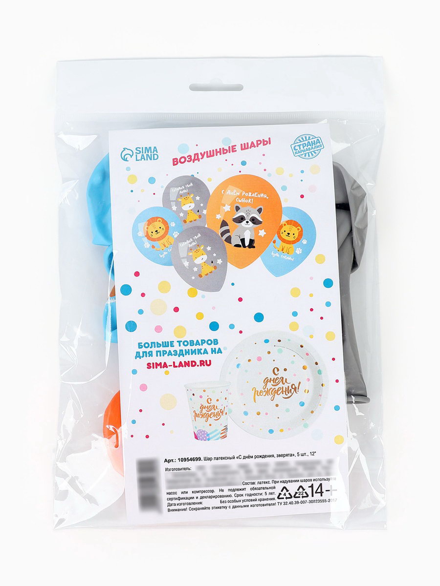 Воздушный шар латексный 12""С днём рождения. Зверята", набор 5 шт., Страна Карнавалия, Россия