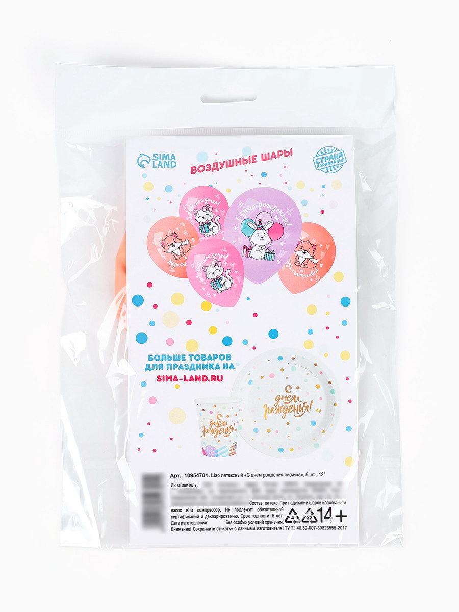 Воздушный шар латексный 12""С днём рождения. Лисичка", набор 5 шт., Страна Карнавалия, Россия