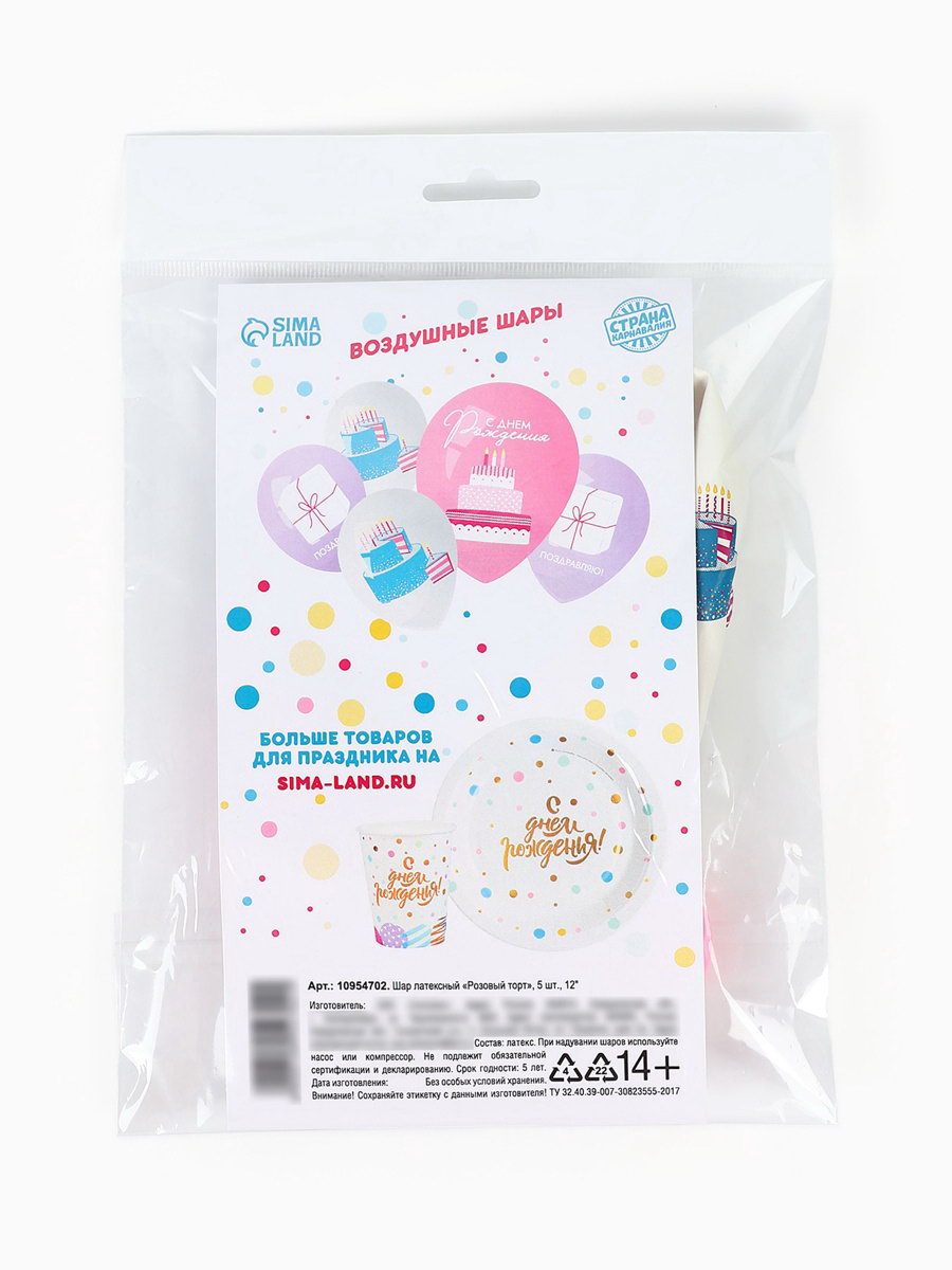 Воздушный шар латексный 12""Розовый торт", набор 5 шт., Страна Карнавалия, Россия