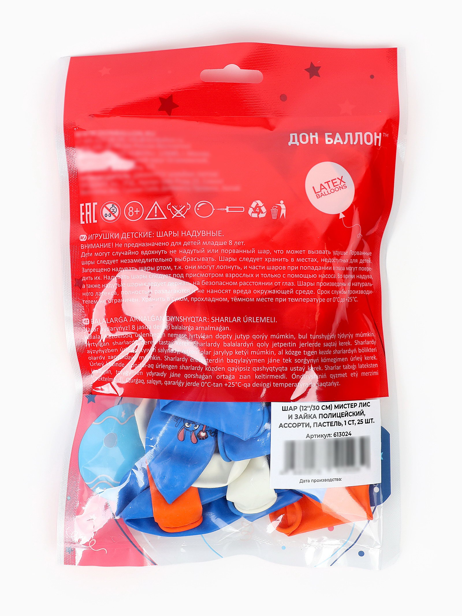 Воздушные шары латексные 12""Мистер Лис и Зайка полицейский", набор 25 шт. МИКС, Дон Баллон, Китай