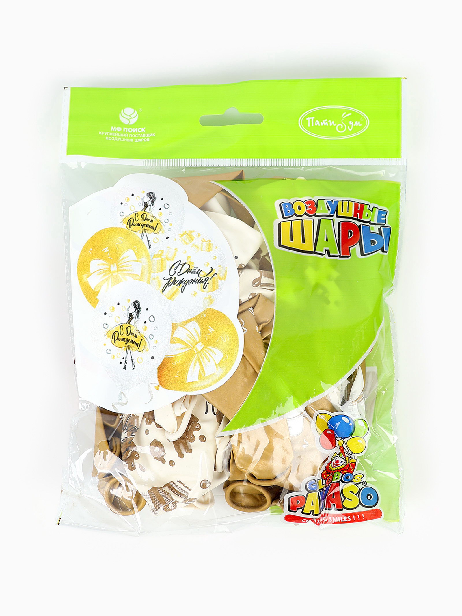 Воздушные шары латексные 12"С днём рождения. Магия золота", набор 25 шт., Latex Occidental, Мексика