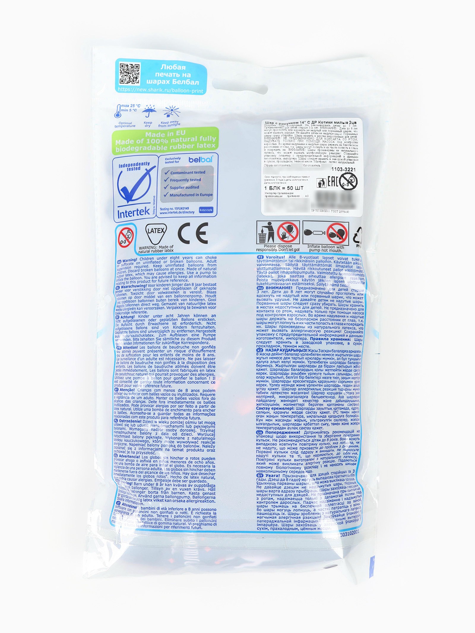 Воздушные шары латексные 14""Котики милые", набор 50 шт., BELBAL, Бельгия