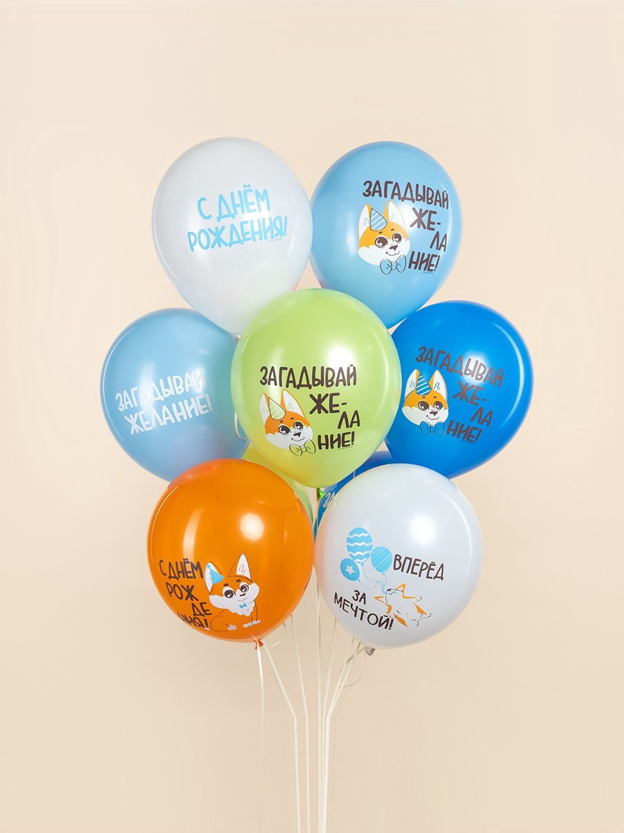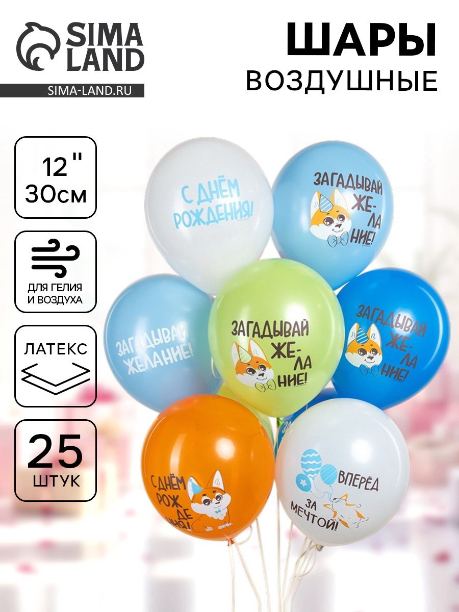 Воздушные шары латексные 12""С днём рождения. Корги", набор 25 шт., Дон Баллон, Китай