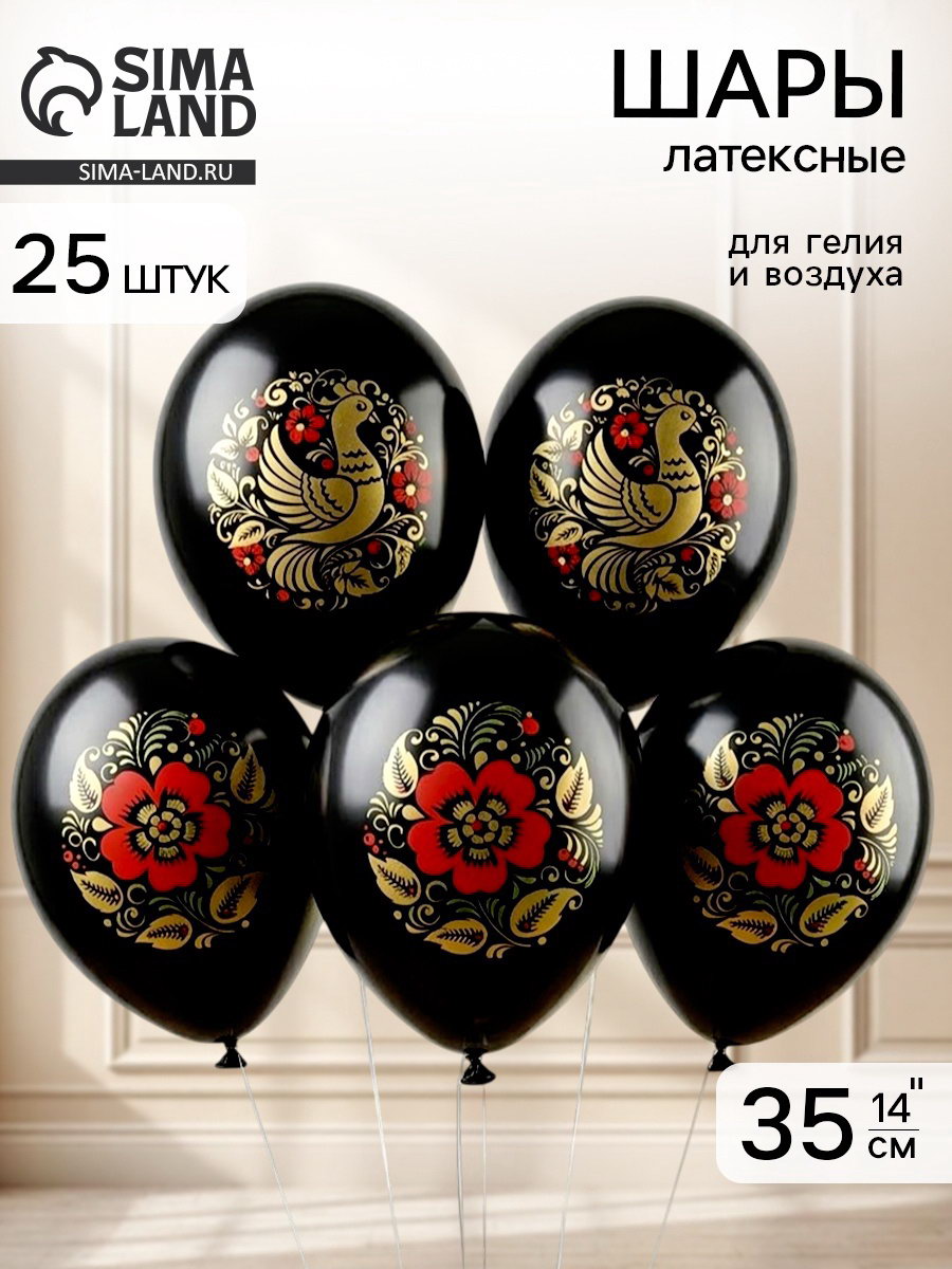Воздушные шары латексные 14""Русский стиль, Хохлома", набор 25 штук, BELBAL, Бельгия