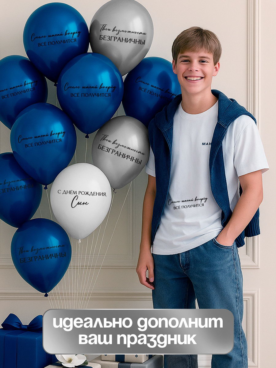 Воздушный шар латексный 12""С днём рождения, сын. Всё получится", 12 шт., Страна Карнавалия, Россия
