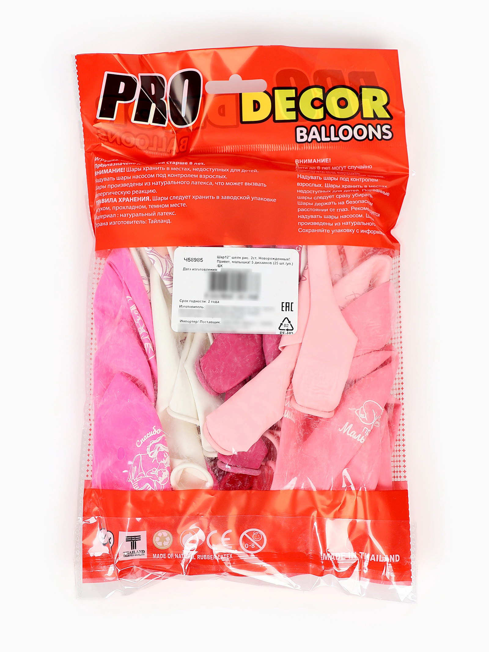 Надувка шара: Воздухом, Гелием Размер упаковки: 16 x 3 x 25 см. tnved: 9503010000 Температурное ограничение: Нет В наборе, шт.: 25 Набор: Да Вид шара: Классический Диаметр, дюйм: 12 Персонажи: Аист Адресат: Малышу/Малышке/Новорождённому Оттенок: Пастель Цвет: Розовый Язык надписи: Русский Тематика рисунка: Я родился Рисунок: Да Набор шаров "Новорожденные" это праздничный декор, который поможет создать тёплую атмосферу в честь появления на свет вашего малыша. Шары изготовлены из прочного материала, что позволяет надуть их как гелием, так и воздухом. Они сохраняют форму долгое время, делая вашу комнату праздничной и радостной в этот важный день. Особенности набора