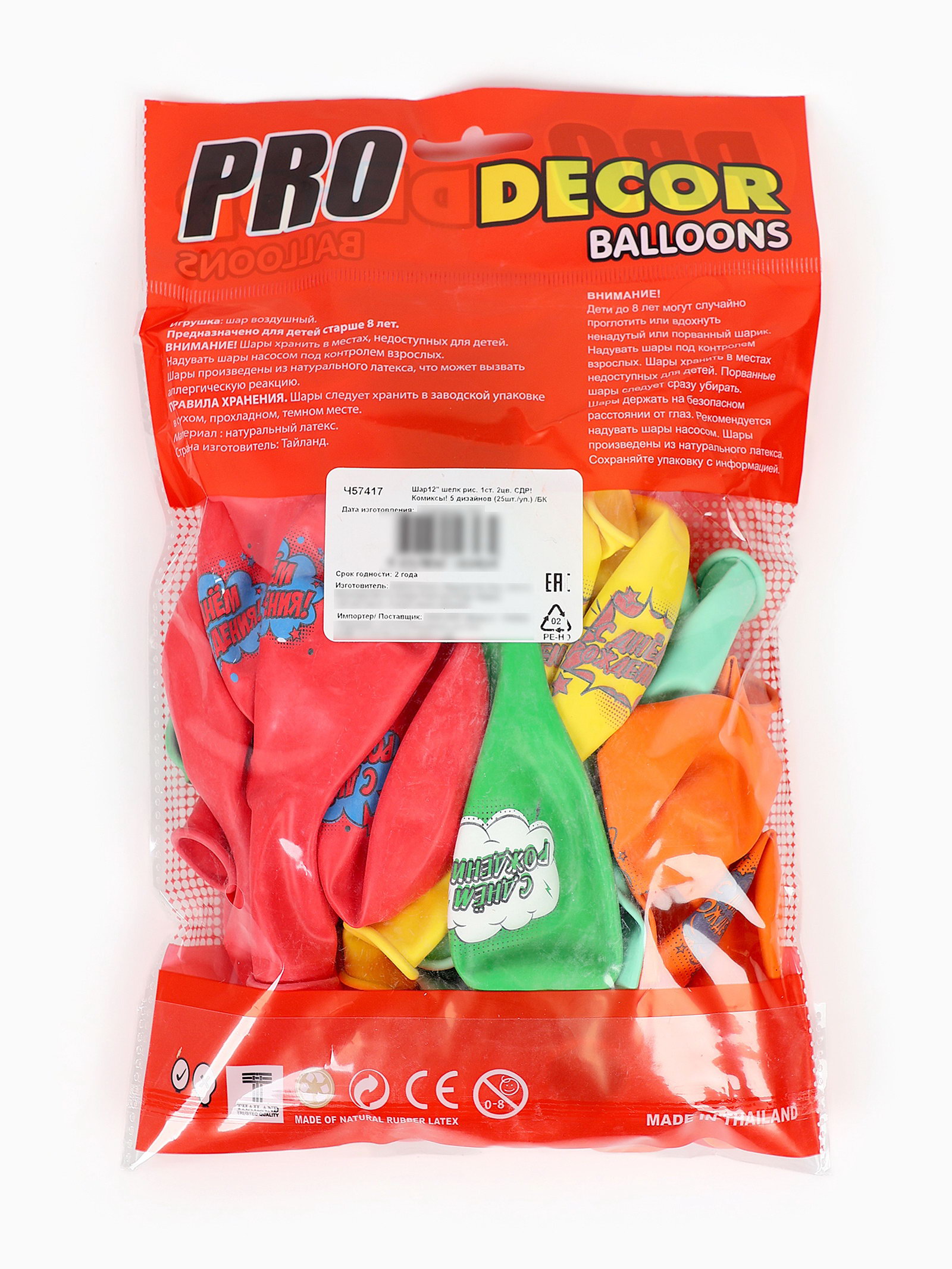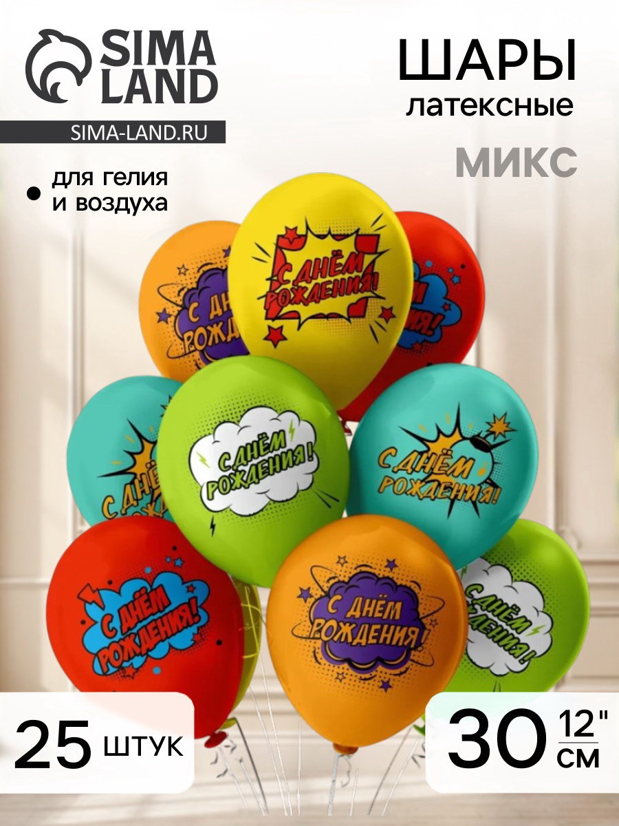 Надувка шара: Воздухом, Гелием Размер упаковки: 16 x 3 x 25 см. tnved: 9503010000 Температурное ограничение: Нет Набор: Да В наборе, шт.: 25 Вид шара: Классический Диаметр, дюйм: 12 Цвет: МИКС Адресат: Имениннику/Имениннице Оттенок: Пастель Язык надписи: Русский Тематика рисунка: День Рождения Рисунок: Да Набор шаров "СДР! Комиксы" это отличный выбор для украшения дома на день рождения! Шары с диаметром 12 дюймов подойдут для украшения любого помещения, а благодаря своему дизайну они будут привлекать внимание и создавать нужное настроение на празднике. Преимущества