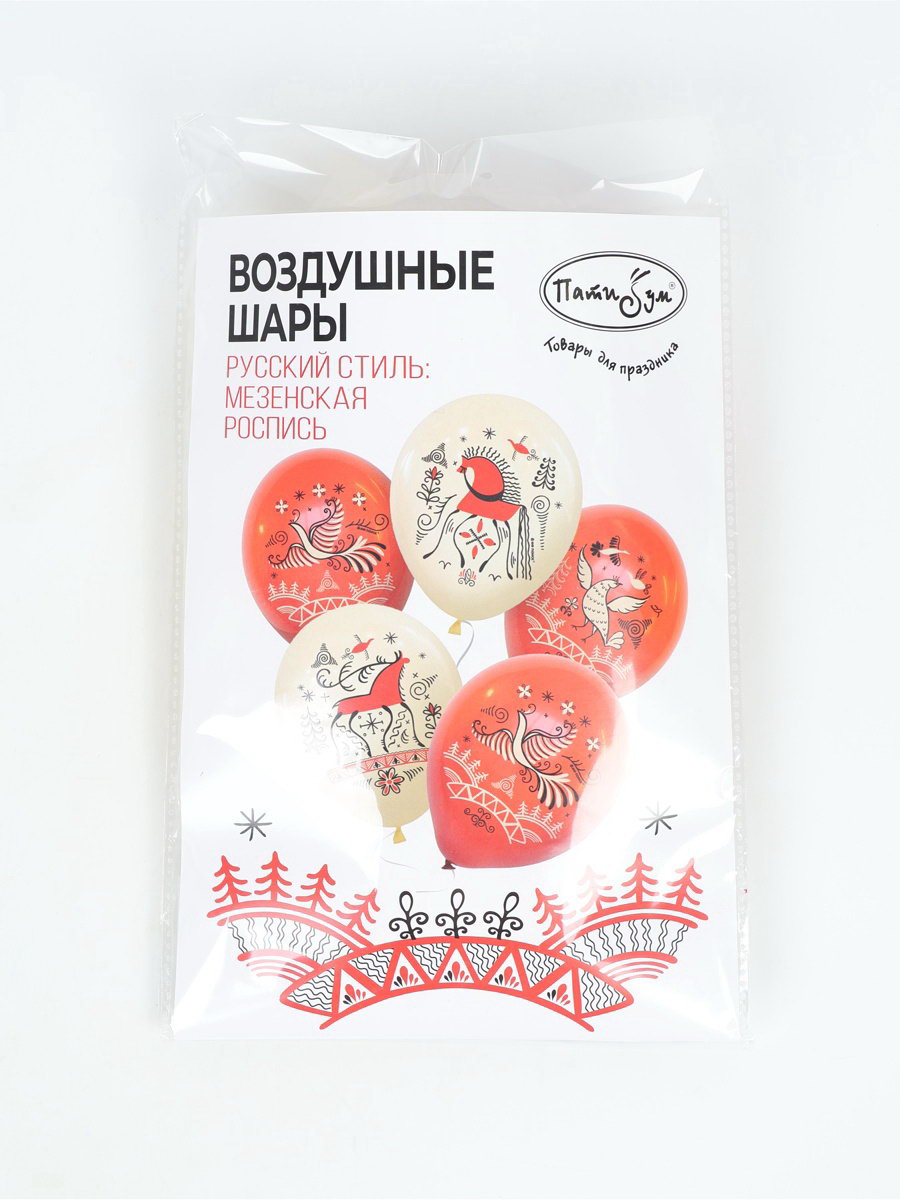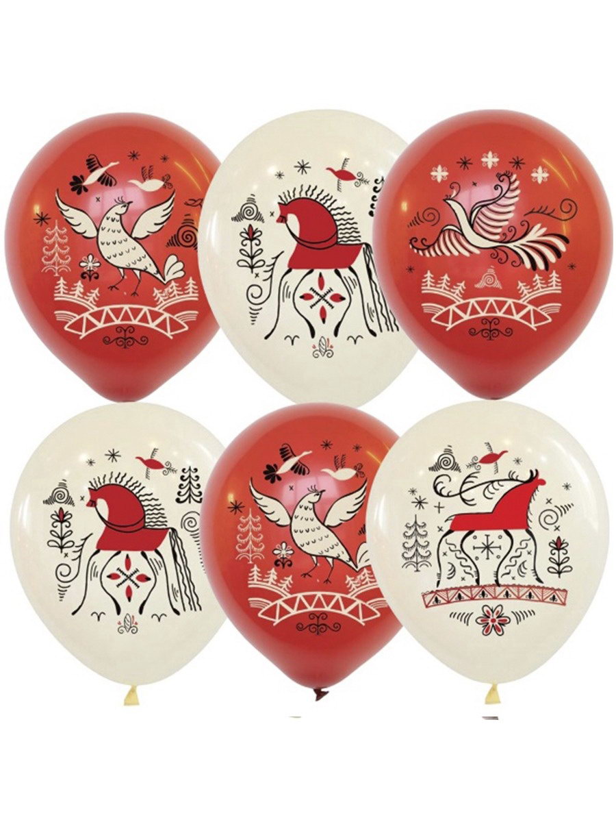 Воздушные шары латексные 12""Русский стиль. Мезенская роспись" набор 15 шт., Latex Occidental, Китай