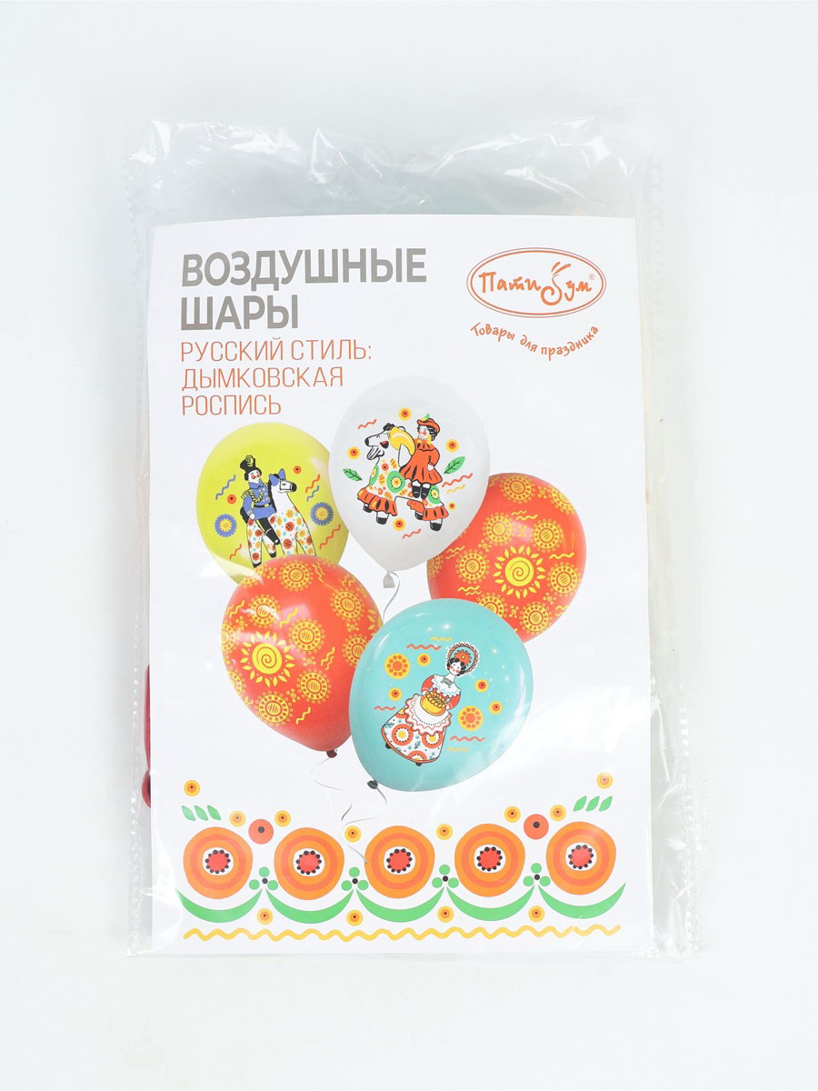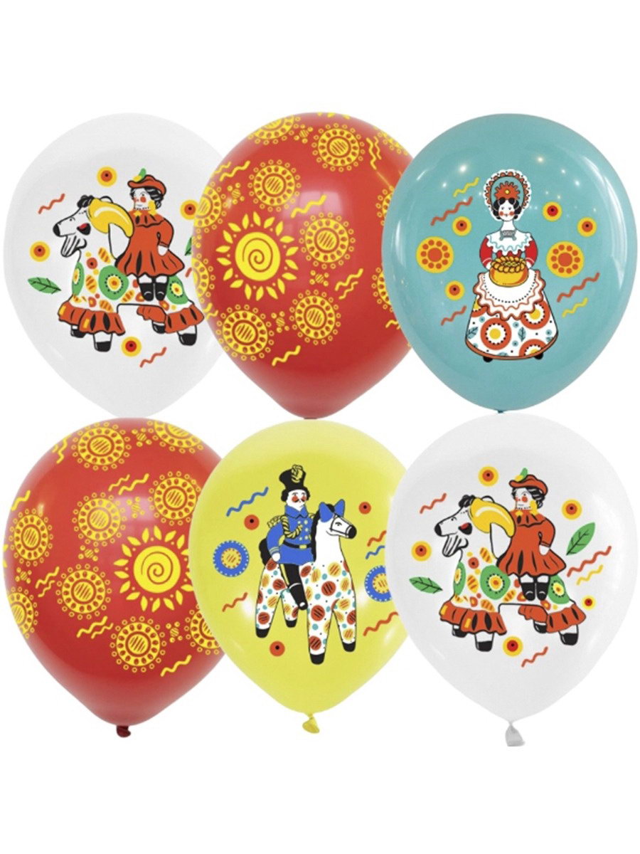 Воздушные шары латексные 12""Русский стиль. Дымковская роспись" набор 15 шт., Latex Occidental, Мексика