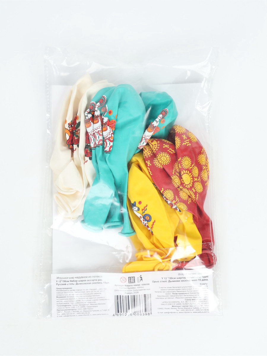 Надувка шара: Воздухом, Гелием Размер упаковки: 15 x 2 x 22 см. tnved: 9503010000 Температурное ограничение: Нет Цвет: Разноцветный Набор: Да Диаметр, дюйм: 12 Адресат: Без адресата Язык надписи: Без надписи Тематика рисунка: Русская народная Вид шара: Классический В наборе, шт.: 15 Оттенок: Пастель Рисунок: Да Набор латексных шаров не просто украшение, а мягкий фон для важного дня. Палитра создает ощущение праздника без суеты, добавляя оригинальности и яркости мероприятию. С такими шарами ваше событие будет выделяться! Особенности