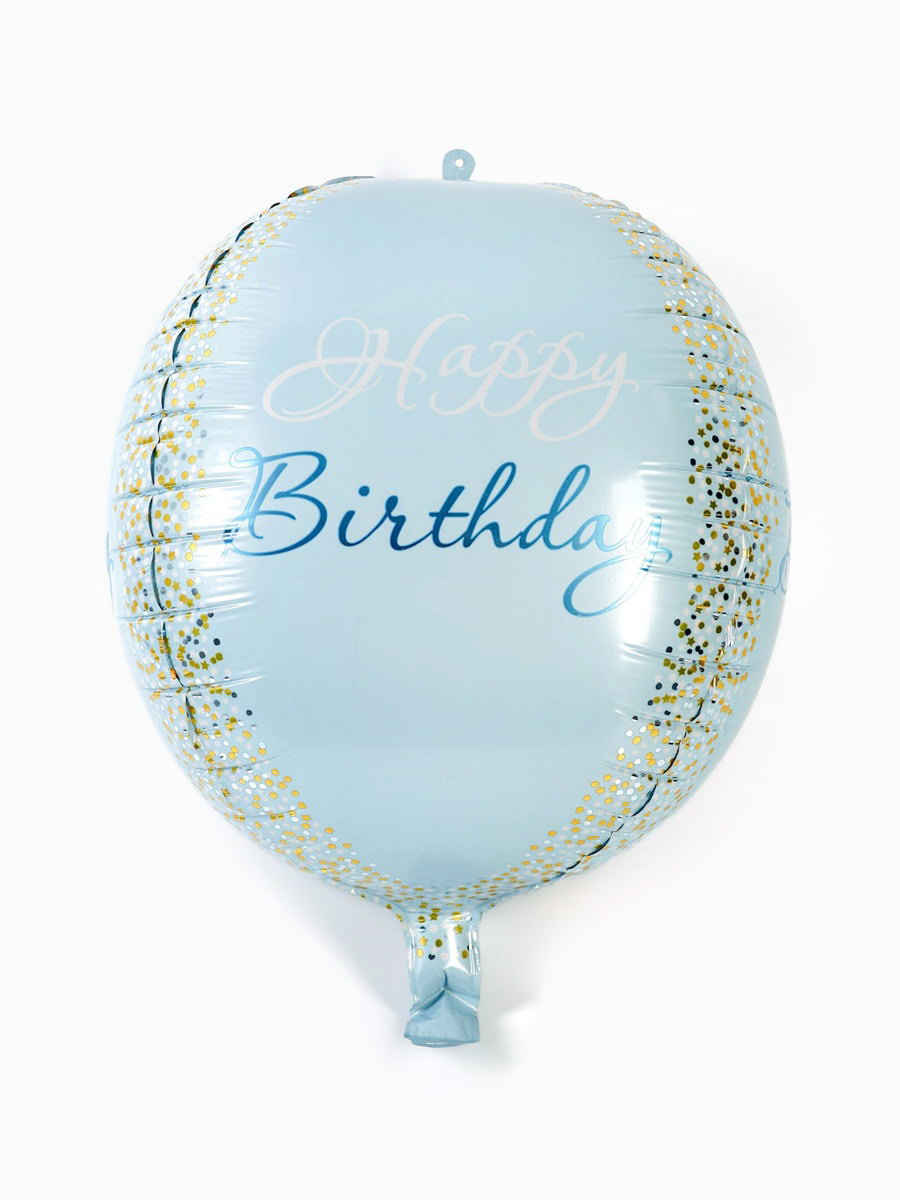 Воздушный шар фольгированный 25""С днём рождения", голубое - золото, 16x20x0.2 см., Страна Карнавалия, Китай