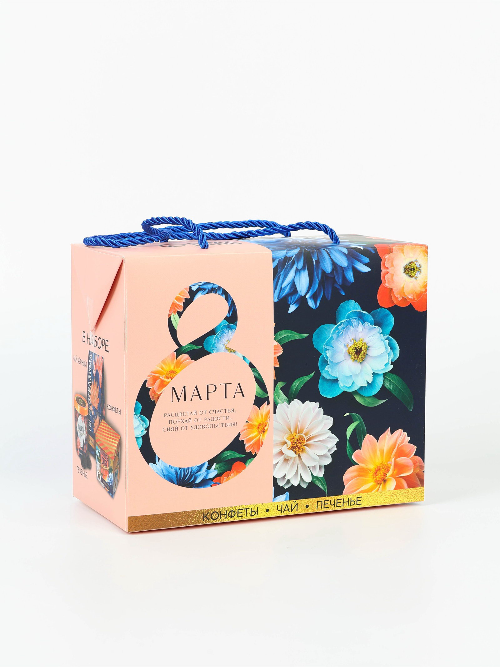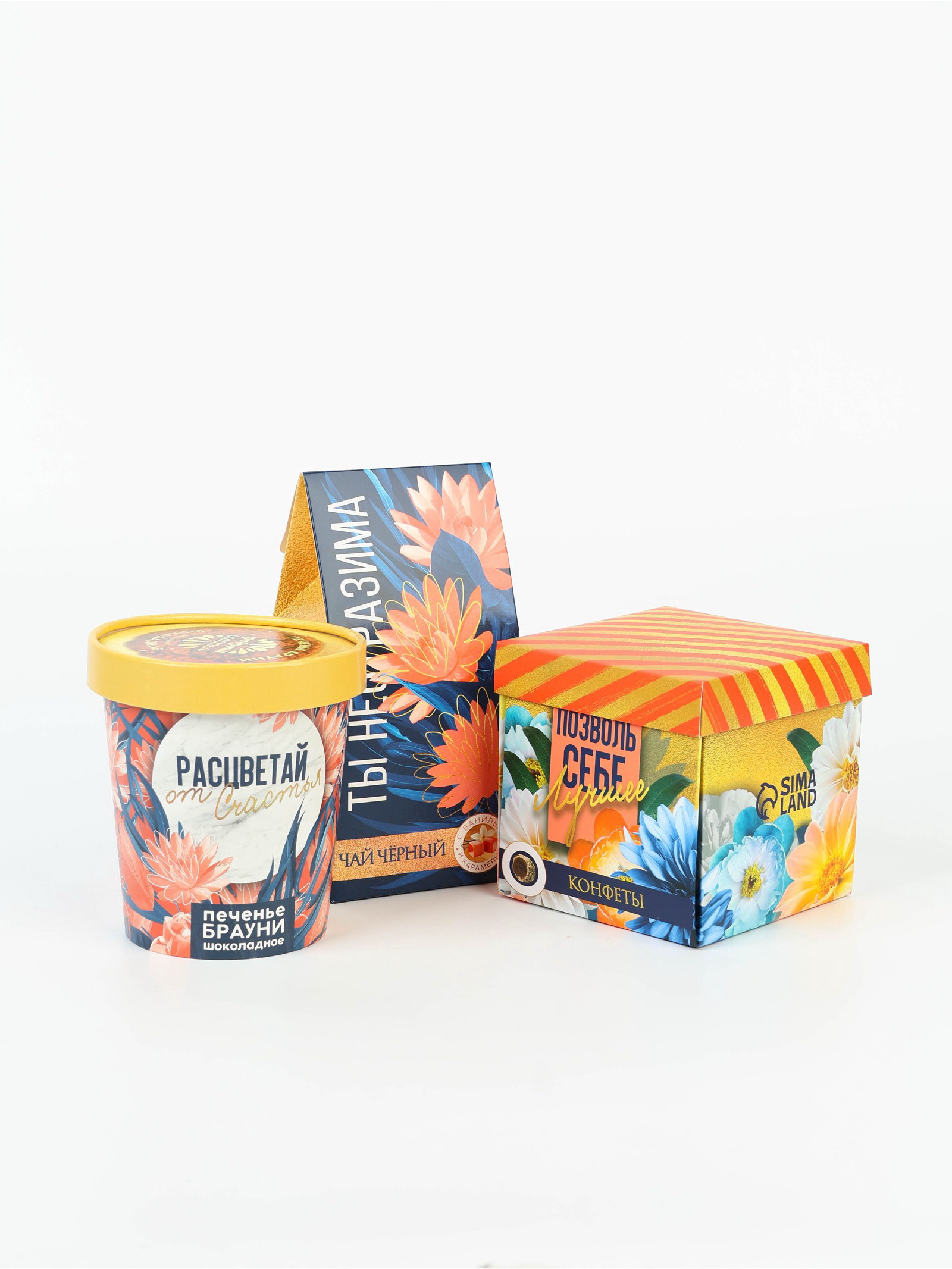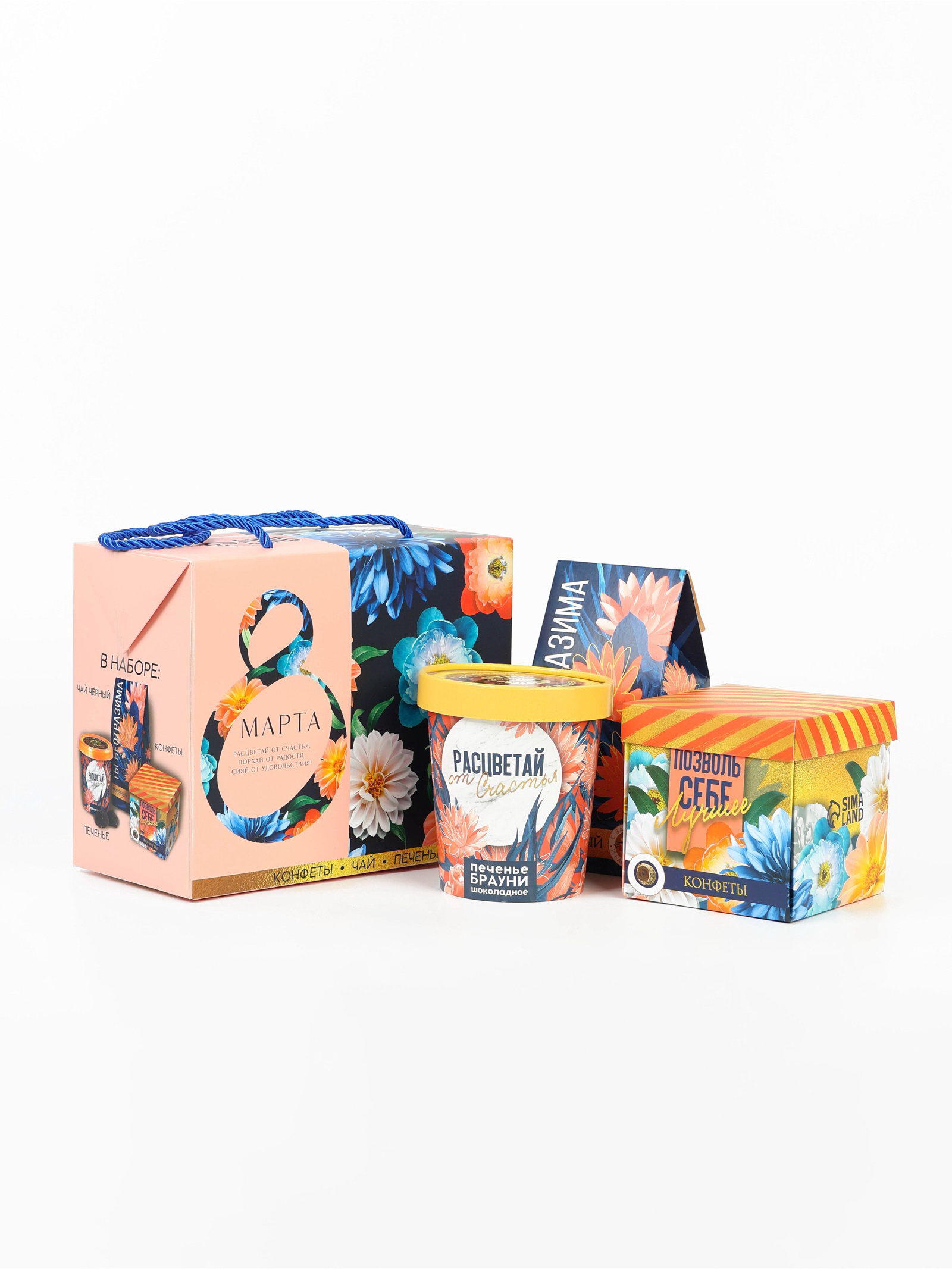Подарочный набор "8 марта": чай 100 гр, печенье брауни 120 гр, конфеты 110 гр., Фабрика счастья, Россия