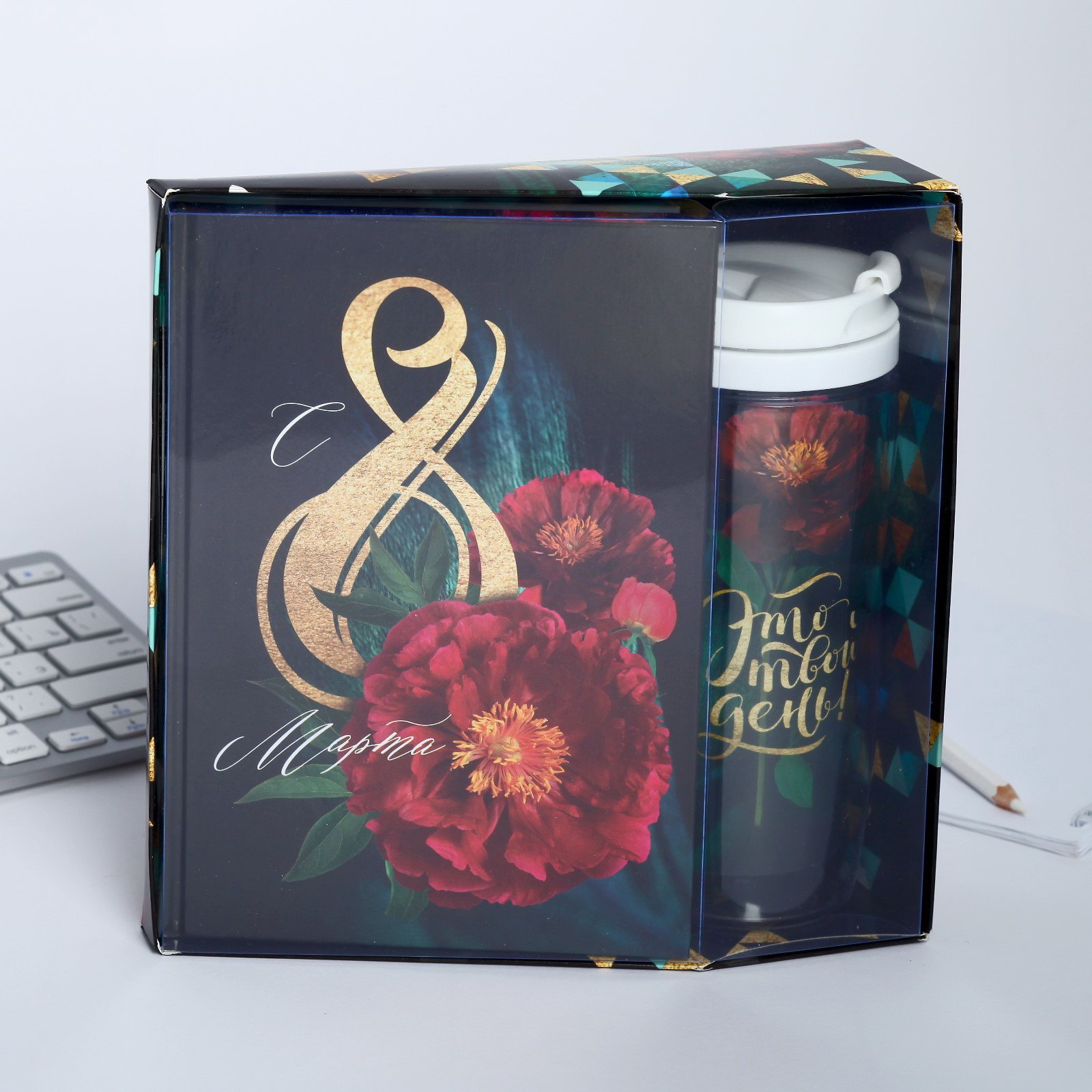 Подарочный набор "С 8 марта", ежедневник и термостакан, ArtFox, Россия