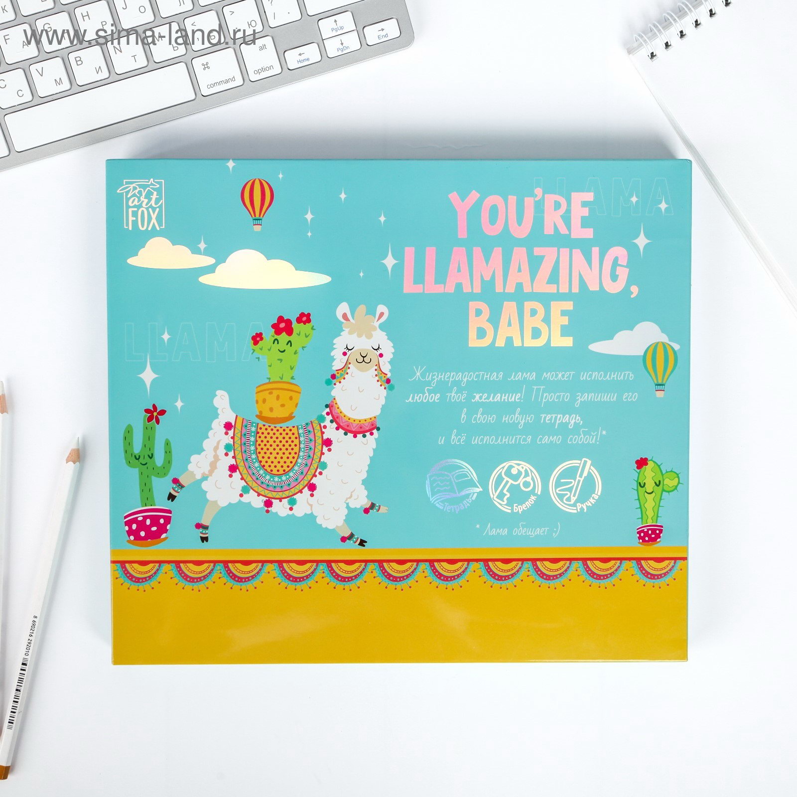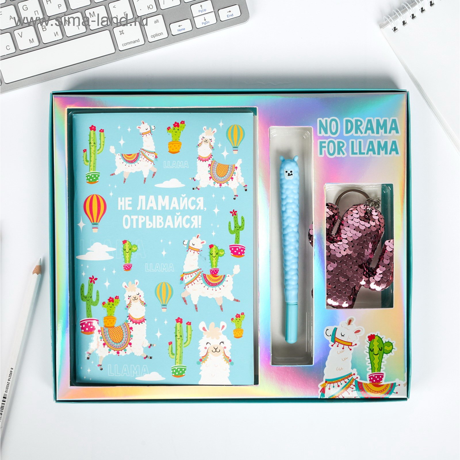 Подарочный набор "Не ЛАМАйся", тетрадь, ручка, брелок, 23.7x23.7x2.2 см., ArtFox, Китай
